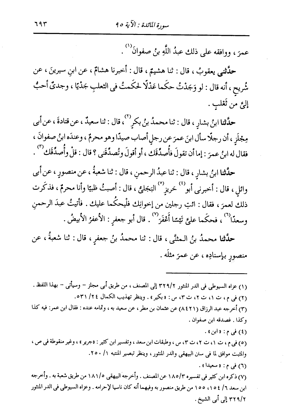 حَدَّثَنَا ابْنُ بَشَّارٍ، قَالَ: ثنا عَبْدُ الرَّحْمَنِ، قَالَ: ثنا شُعْبَةُ، عَنْ مَنْصُورٍ، عَنْ أَبِي وَائِلٍ، قَالَ: أَخْبَرَنِي ابْنُ جَرِيرٍ الْبَجَلِيُّ، قَالَ: أَصَبْتُ ظَبْيًا وَأَنَا مُحْرِمٌ، فَذَكَرْتُ ذَلِكَ لِعُمَرَ، فَقَالَ: " §ائْتِ رَجُلَيْنِ مِنْ إِخْوَانِكَ فَلْيَحْكُمَا عَلَيْكَ، فَأَتَيْتُ عَبْدَ الرَّحْمَنِ وَسَعْدًا، فَحَكَمَا عَلَيَّ تَيْسًا أَعْفَرَ. قَالَ أَبُو جَعْفَرٍ: الْأَعْفَرُ: الْأَبْيَضُ حَدَّثَنَا مُحَمَّدُ بْنُ الْمُثَنَّى قَالَ: ثنا مُحَمَّدُ بْنُ جَعْفَرٍ قَالَ: ثنا شُعْبَةُ، عَنْ مَنْصُورٍ بِإِسْنَادِهِ عَنْ عُمَرَ، مِثْلَهُ