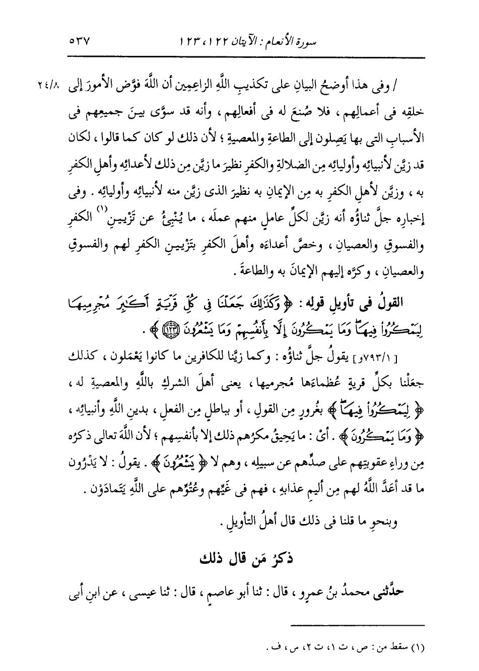 ذِكْرُ مَنْ قَالَ ذَلِكَ حَدَّثَنِي مُحَمَّدُ بْنُ عَمْرٍو، قَالَ: ثنا أَبُو عَاصِمٍ، قَالَ: ثنا عِيسَى، عَنِ ابْنِ أَبِي -[538]- نَجِيحٍ، عَنْ مُجَاهِدٍ: {§أَكَابِرَ مُجْرِمِيهَا} [الأنعام: 123] قَالَ: «عُظَمَاءَهَا» حَدَّثَنِي الْمُثَنَّى قَالَ: ثنا أَبُو حُذَيْفَةَ قَالَ: ثنا شِبْلٌ، عَنِ ابْنِ أَبِي نَجِيحٍ، عَنْ مُجَاهِدٍ، مِثْلَهُ