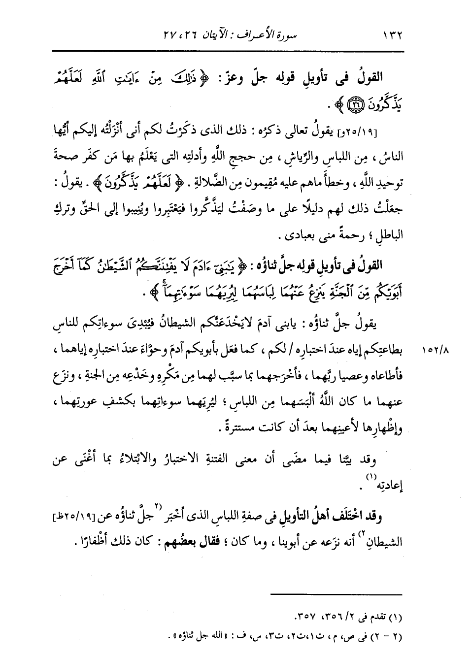 §الْقَوْلُ فِي تَأْوِيلِ قَوْلِهِ تَعَالَى: {ذَلِكَ مِنْ آيَاتِ اللَّهِ لَعَلَّهُمْ يَذَّكَّرُونَ} [الأعراف: 26] يَقُولُ تَعَالَى ذِكْرُهُ: ذَلِكَ الَّذِي ذَكَرْتُ لَكُمْ أَنِّي أَنْزَلْتُهُ إِلَيْكُمْ أَيُّهَا النَّاسُ مِنَ اللِّبَاسِ وَالرِّيَاشِ مِنْ حُجَجِ اللَّهِ وَأَدِلَّتِهِ الَّتِي يَعْلَمُ بِهَا مَنْ كَفَرَ صِحَّةَ تَوْحِيدِ اللَّهِ، وَخَطَأَ مَا هُمْ عَلَيْهِ مُقِيمُونَ مِنَ الضَّلَالَةِ. {لَعَلَّهُمْ يَذَّكَّرُونَ} [الأعراف: 26] يَقُولُ جَلَّ ثَنَاؤُهُ: جَعَلْتُ ذَلِكَ لَهُمْ دَلِيلًا عَلَى مَا وَصَفْتُ لِيَذَّكَّرُوا، فَيَعْتَبِرُوا وَيُنِيبُوا إِلَى الْحَقِّ وَتَرْكِ الْبَاطِلِ، رَحْمَةً مِنِّي بِعِبَادِي