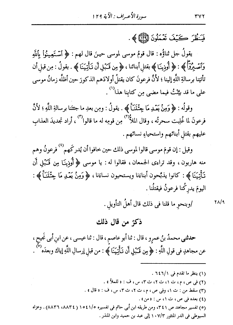 ذِكْرُ مَنْ قَالَ ذَلِكَ: حَدَّثَنِي مُحَمَّدُ بْنُ عَمْرٍو، قَالَ: ثنا أَبُو عَاصِمٍ، قَالَ: ثنا عِيسَى، عَنِ ابْنِ أَبِي نَجِيحٍ، عَنْ مُجَاهِدٍ، فِي قَوْلِ اللَّهِ: " {§مِنْ قَبْلِ أَنْ تَأْتِيَنَا} [الأعراف: 129] مِنْ قَبْلَ إِرْسَالِ اللَّهِ إِيَّاكَ وَبَعْدَهُ " -[373]- حَدَّثَنِي الْمُثَنَّى، قَالَ: ثنا أَبُو حُذَيْفَةَ، قَالَ: ثنا شِبْلٌ، عَنِ ابْنِ أَبِي نَجِيحٍ، عَنْ مُجَاهِدٍ، مِثْلَهُ
