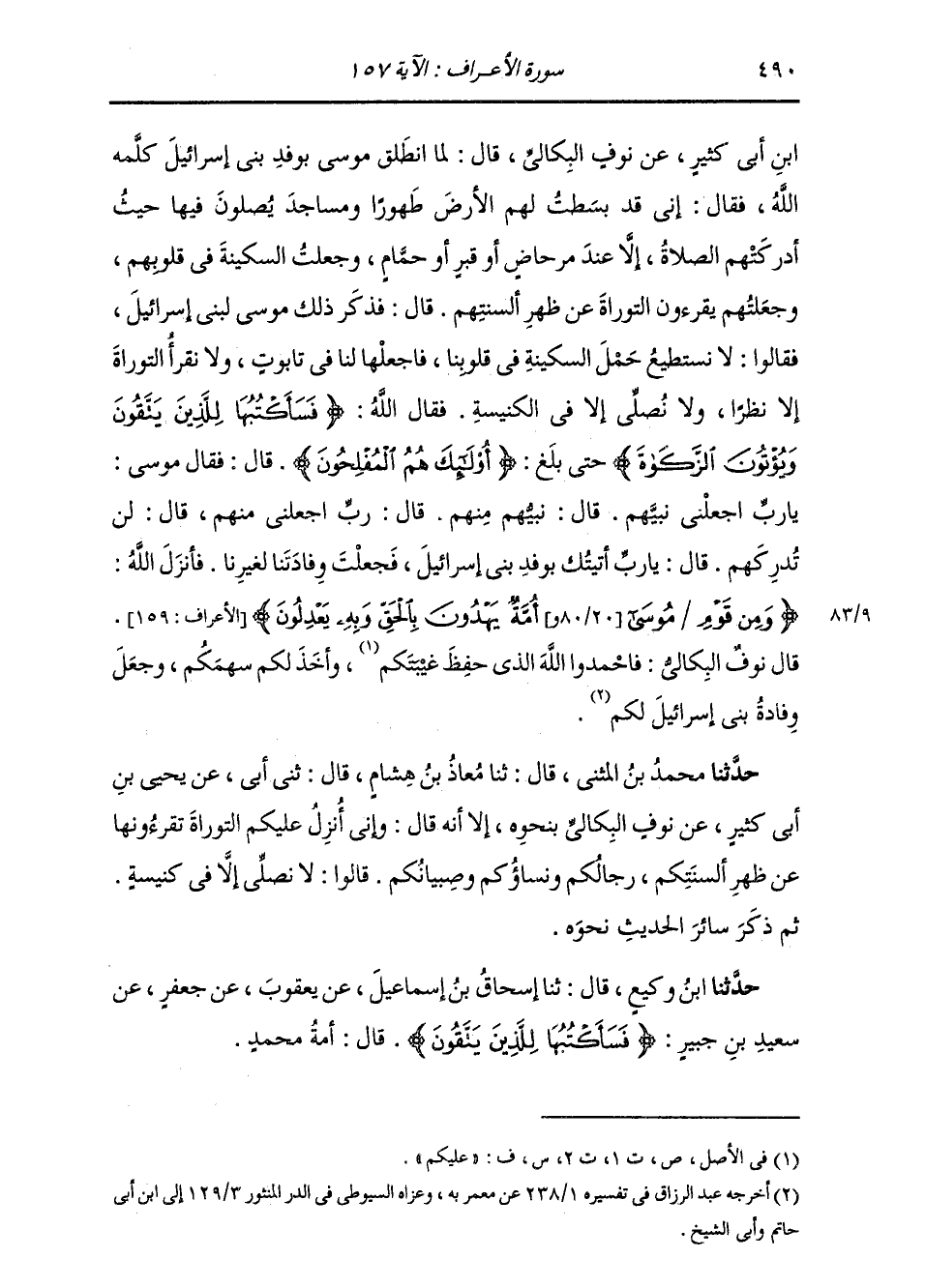 حَدَّثَنَا ابْنُ وَكِيعٍ، قَالَ: ثنا إِسْحَاقُ بْنُ إِسْمَاعِيلَ، عَنْ يَعْقُوبَ، عَنْ جَعْفَرٍ، عَنْ سَعِيدِ بْنِ جُبَيْرٍ: " {§فَسَأَكْتُبُهَا لِلَّذِينَ يَتَّقُونَ} [الأعراف: 156] قَالَ: أُمَّةُ مُحَمَّدٍ صَلَّى اللهُ عَلَيْهِ وَسَلَّمَ "