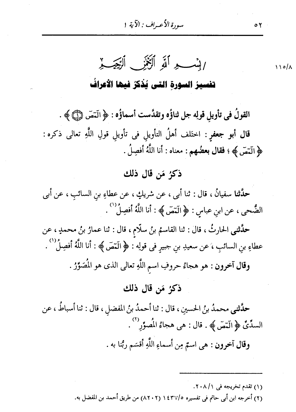 §الْقَوْلُ فِي تَفْسِيرِ السُّورَةِ الَّتِي يُذْكَرُ فِيهَا الْأَعْرَافُ بِسْمِ اللَّهِ الرَّحْمَنِ الرَّحِيمِ