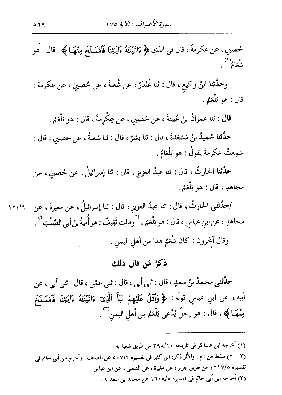 قَالَ: ثنا عِمْرَانُ بْنُ عُيَيْنَةَ، عَنْ حُصَيْنٍ، عَنْ عِكْرِمَةَ، قَالَ: «§هُوَ بَلْعَمُ»