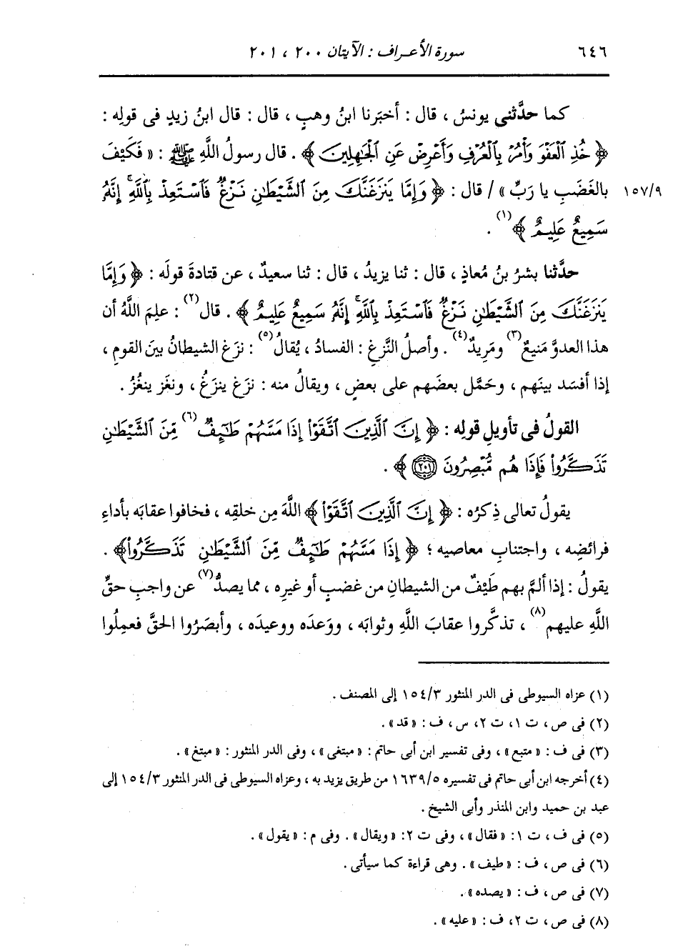 حَدَّثَنَا بِشْرُ بْنُ مُعَاذٍ، قَالَ: ثنا يَزِيدُ، قَالَ: ثنا سَعِيدٌ، عَنْ قَتَادَةَ، قَوْلُهُ: " {§وَإِمَّا يَنْزَغَنَّكَ مِنَ الشَّيْطَانِ نَزْغٌ فَاسْتَعِذْ بِاللَّهِ إِنَّهُ سُمَيْعٌ عَلِيمٌ} [الأعراف: 200] قَالَ: عَلِمَ اللَّهُ أَنَّ هَذَا الْعَدُوَّ مَنِيعٌ وَمَرِيدٌ " وَأَصْلُ النَّزْغِ: الْفَسَادُ، يَقُولُ: نَزَغَ الشَّيْطَانُ بَيْنَ الْقَوْمِ إِذَا أَفْسَدَ بَيْنَهُمْ وَحَمَلَ بَعْضَهُمْ عَلَى بَعْضٍ، وَيُقَالُ مِنْهُ: نَزَغَ يَنْزَغُ، وَنَغَزَ يَنْغَزُ