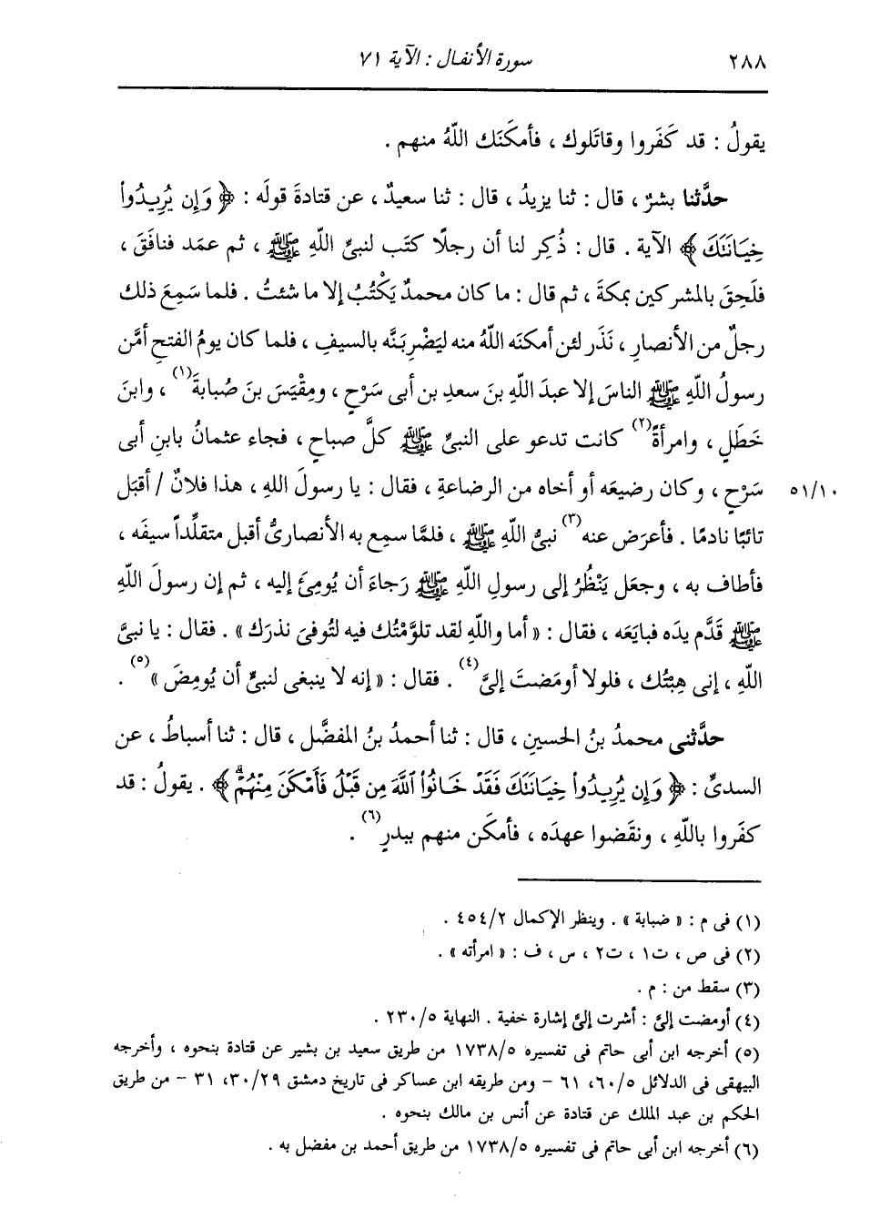 حَدَّثَنِي مُحَمَّدُ بْنُ الْحُسَيْنِ، قَالَ: ثنا أَحْمَدُ بْنُ الْمُفَضَّلِ، قَالَ: ثنا أَسْبَاطٌ، عَنِ السُّدِّيِّ: " {§وَإِنْ يُرِيدُوا خِيَانَتَكَ فَقَدْ خَانُوا اللَّهَ مِنْ قَبْلُ فَأَمْكَنَ مِنْهُمْ} [الأنفال: 71] يَقُولُ: قَدْ كَفَرُوا بِاللَّهِ وَنَقَضُوا عَهْدَهُ، فَأَمْكَنَ مِنْهُمْ بِبَدْرٍ "