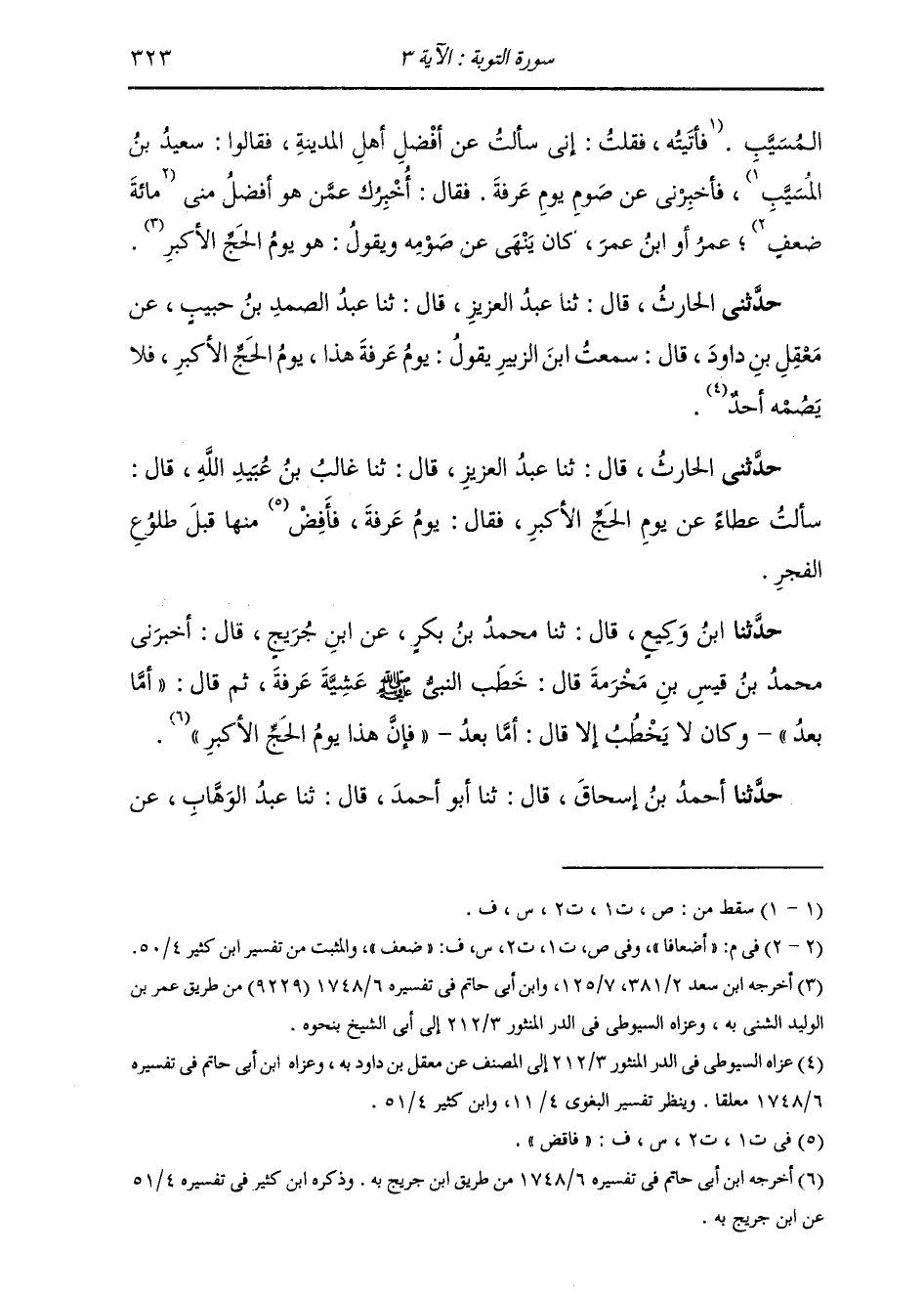 حَدَّثَنَا أَحْمَدُ بْنُ إِسْحَاقَ، قَالَ: ثنا أَبُو أَحْمَدَ، قَالَ: ثنا عَبْدُ الْوَهَّابِ، عَنْ -[324]- مُجَاهِدٍ، قَالَ: «§يَوْمُ الْحَجِّ الْأَكْبَرِ يَوْمُ عَرَفَةَ»