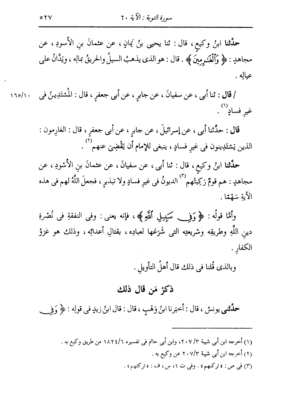 ذِكْرُ مَنْ قَالَ ذَلِكَ: حَدَّثَنِي يُونُسُ، قَالَ: أَخْبَرَنَا ابْنُ وَهْبٍ، قَالَ: قَالَ ابْنُ زَيْدٍ، فِي قَوْلِهِ: " {§وَفِي -[528]- سَبِيلِ اللَّهِ} [التوبة: 60] قَالَ: الْغَازِي فِي سَبِيلِ اللَّهِ "