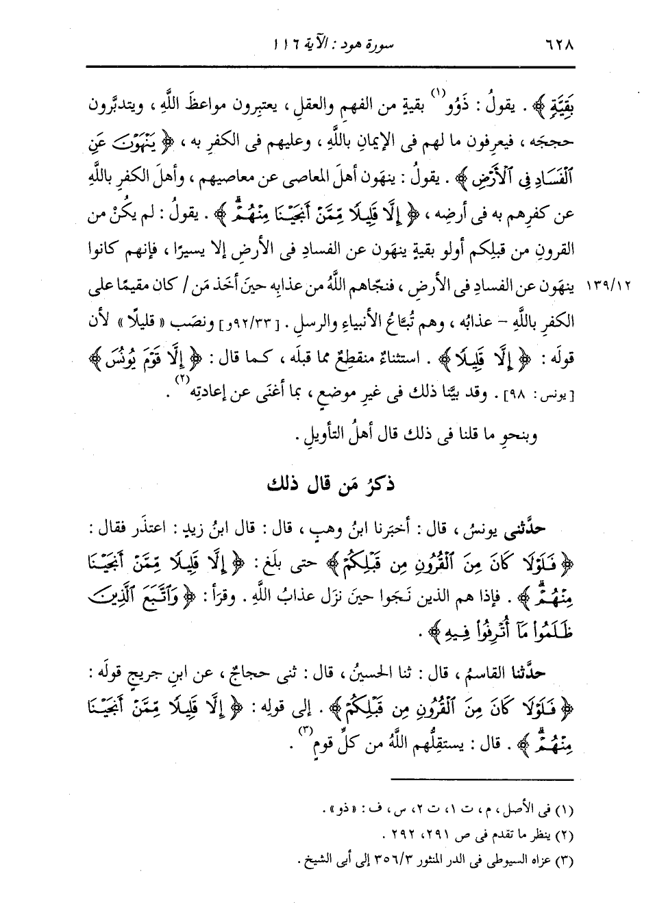 حَدَّثَنِي يُونُسُ، قَالَ: أَخْبَرَنَا ابْنُ وَهْبٍ، قَالَ: قَالَ ابْنُ زَيْدٍ: " §اعْتَذَرَ فَقَالَ: {فَلَوْلَا كَانَ مِنَ الْقُرُونِ مِنْ قَبْلِكُمْ} [هود: 116] حَتَّى بَلَغَ: {إِلَّا قَلِيلًا مِمَّنْ أَنْجَيْنَا مِنْهُمْ} [هود: 116] فَإِذَا هُمُ الَّذِينَ نَجَوْا حِينَ نَزَلَ عَذَابُ اللَّهِ. وَقَرَأَ: {وَاتَّبَعَ الَّذِينَ ظَلَمُوا مَا أُتْرِفُوا فِيهِ} [هود: 116] "
