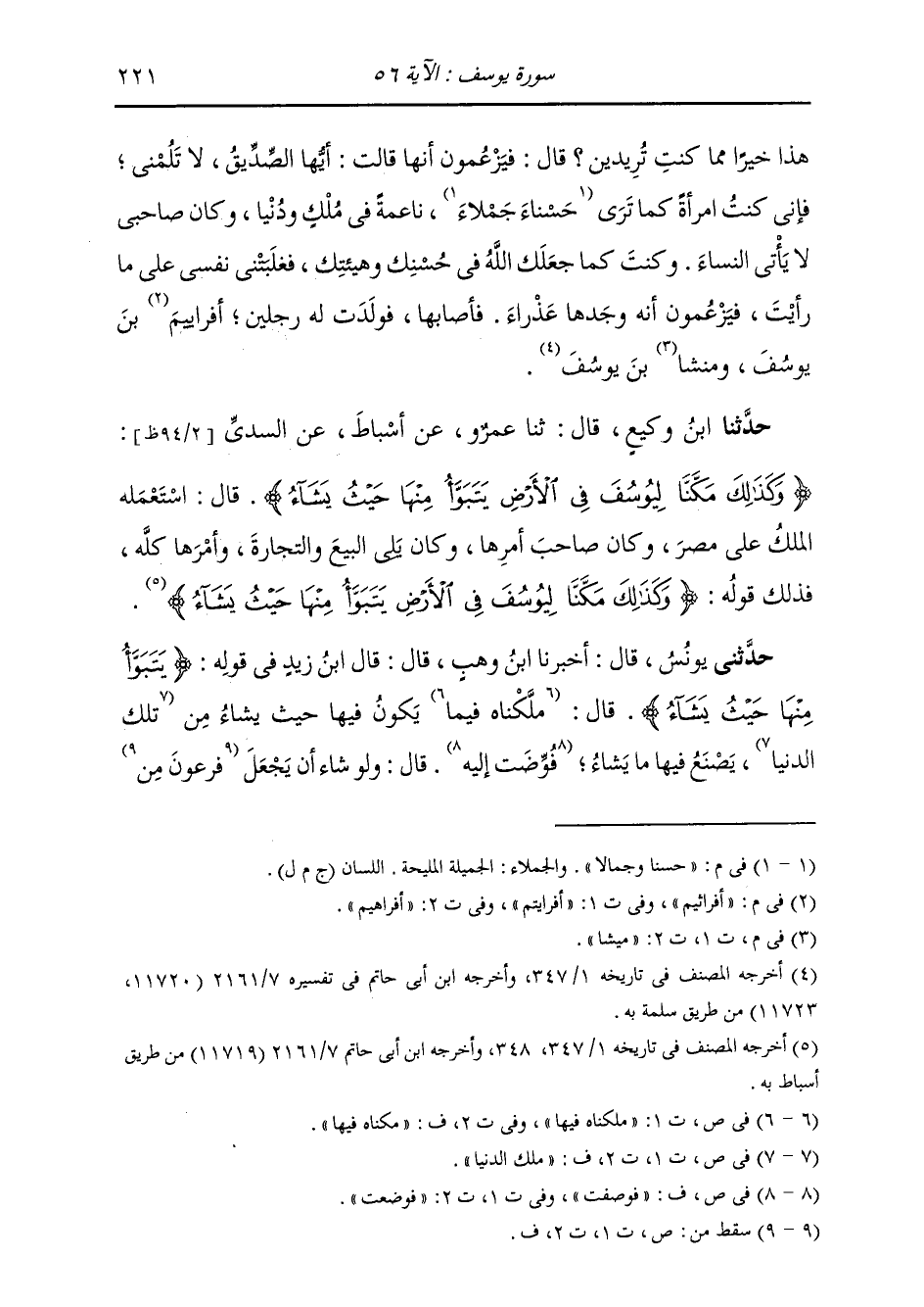 حَدَّثَنَا ابْنُ وَكِيعٍ، قَالَ: ثنا عَمْرٌو، عَنْ أَسْبَاطٍ، عَنِ السُّدِّيِّ، {§وَكَذَلِكَ مَكَّنَّا لِيُوسُفَ فِي الْأَرْضِ يَتَبَوَّأُ مِنْهَا حَيْثُ يَشَاءُ} [يوسف: 56] قَالَ: اسْتَعْمَلَهُ الْمَلِكُ عَلَى مِصْرَ، وَكَانَ صَاحِبَ أَمْرِهَا، وَكَانَ يَلِي الْبَيْعَ وَالتِّجَارَةَ وَأَمْرَهَا كُلَّهُ، فَذَلِكَ قَوْلُهُ: {وَكَذَلِكَ مَكَّنَّا لِيُوسُفَ فِي الْأَرْضِ يَتَبَوَّأُ مِنْهَا حَيْثُ يَشَاءُ} [يوسف: 56]