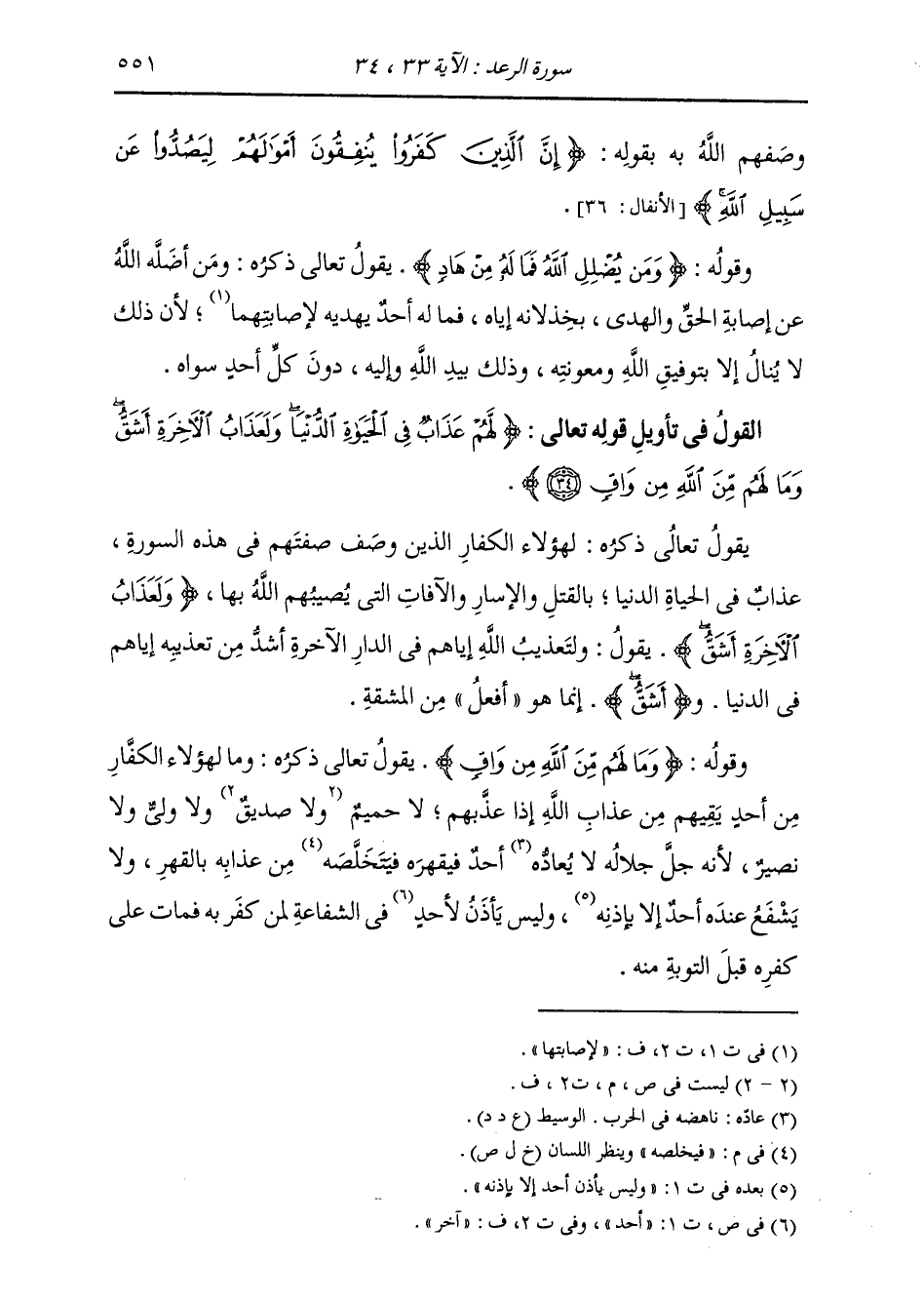 §الْقَوْلُ فِي تَأْوِيلِ قَوْلِهِ تَعَالَى: {لَهُمْ عَذَابٌ فِي الْحَيَاةِ الدُّنْيَا، وَلَعَذَابُ الْآخِرَةِ أَشَقُّ، وَمَا لَهُمْ مِنَ اللَّهِ مِنْ وَاقٍ} [الرعد: 34] يَقُولُ تَعَالَى ذِكْرُهُ: لِهَؤُلَاءِ الْكُفَّارِ الَّذِينَ وَصَفَ صِفَتَهُمْ فِي هَذِهِ السُّورَةِ عَذَابٌ فِي الْحَيَاةِ الدُّنْيَا بِالْقَتْلِ وَالْإِسَارِ وَالْآفَاتِ الَّتِي يُصِيبُهُمُ اللَّهُ بِهَا، {وَلَعَذَابُ الْآخِرَةِ أَشَقُّ} [الرعد: 34] يَقُولُ: وَلَتَعْذِيبُ اللَّهِ إِيَّاهُمْ فِي الدَّارِ الْآخِرَةِ أَشَدُّ مِنْ تَعْذِيبِهِ إِيَّاهُمْ فِي الدُّنْيَا وَأَشَقُّ، إِنَّمَا هُو «أَفْعَلُ» مِنَ الْمَشَقَّةِ
