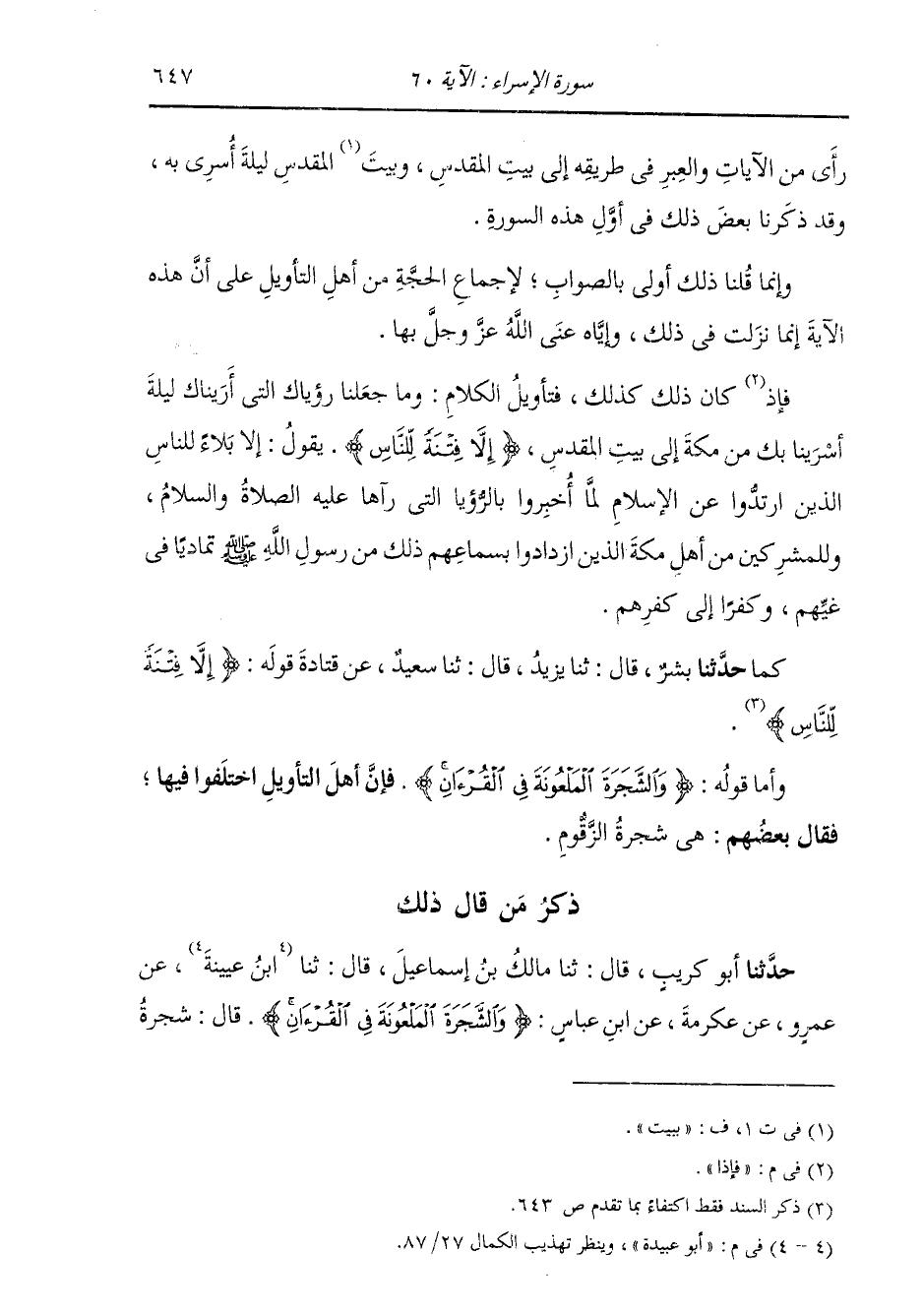 حَدَّثَنَا بِشْرٌ، قَالَ: ثنا يَزِيدُ، قَالَ: ثنا سَعِيدٌ، عَنْ قَتَادَةَ، قَوْلُهُ: {§إِلَّا فِتْنَةً لِلنَّاسِ} [الإسراء: 60] وَأَمَّا قَوْلُهُ: {وَالشَّجَرَةَ الْمَلْعُونَةَ فِي الْقُرْآنِ} [الإسراء: 60] فَإِنَّ أَهْلَ التَّأْوِيلِ اخْتَلَفُوا فِيهَا. فَقَالَ بَعْضُهُمْ: هِيَ شَجَرَةُ الزَّقُّومِ