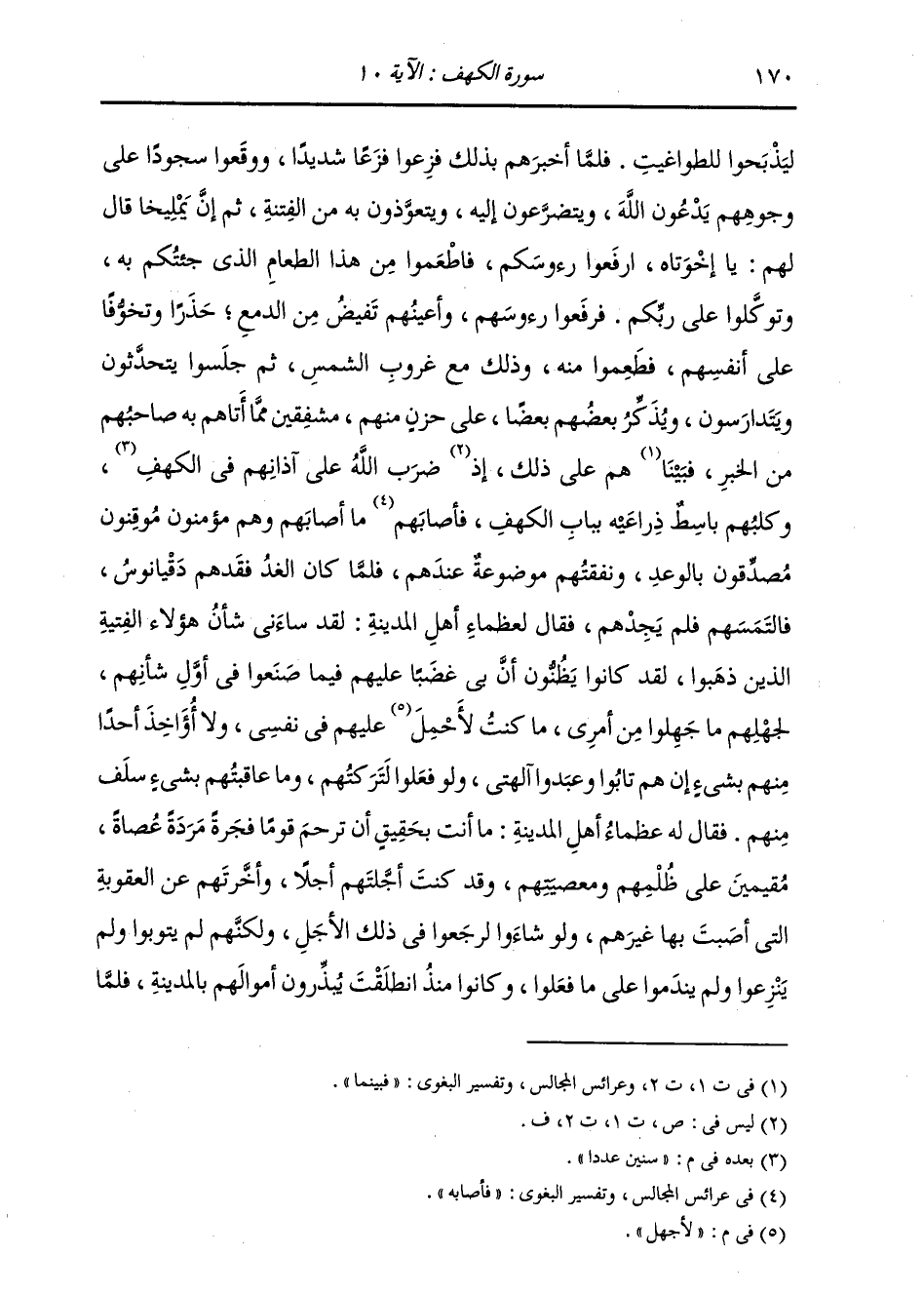 لَيَذْبَحُوا لِلطَّوَاغِيتِ، فَلَمَّا أَخْبَرَهُمْ بِذَلِكَ، فَزِعُوا فَزَعًا شَدِيدًا، وَوَقَعُوا سُجُودًا عَلَى وُجُوهِهِمْ يَدْعُونَ اللَّهَ، وَيَتَضَرَّعُونَ إِلَيْهِ، وَيَتَعَوَّذُونَ بِهِ مِنَ الْفِتْنَةِ، ثُمَّ إِنَّ يمليخا قَالَ لَهُمْ: يَا إِخْوَتَاهْ، ارْفَعُوا رُءُوسَكُمْ، فَاطْعَمُوا مِنْ هَذَا الطَّعَامِ الَّذِي جِئْتُكُمْ بِهِ، وَتَوَكَّلُوا عَلَى رَبِّكُمْ، فَرَفَعُوا رُءُوسَهُمْ، وَأَعْيُنَهُمْ تُفِيضُ مِنَ الدَّمْعِ حَذَرًا وَتَخَوُّفًا عَلَى أَنْفُسِهِمْ، فَطَعِمُوا مِنْهُ، وَذَلِكَ مَعَ غُرُوبِ الشَّمْسِ، ثُمَّ جَلَسُوا يَتَحَدَّثُونَ وَيَتَدَارَسُونَ، وَيَذْكُرُ بَعْضُهُمْ بَعْضًا عَلَى حُزْنٍ مِنْهُمْ، مُشْفِقِينَ مِمَّا أَتَاهُمْ بِهِ صَاحِبُهُمْ مِنَ الْخَبَرِ، فَبَيْنَا هُمْ عَلَى ذَلِكَ، إِذْ ضَرَبَ اللَّهُ عَلَى آذَانِهِمْ فِي الْكَهْفِ سِنِينَ عَدَدًا، وَكَلْبُهُمْ بَاسِطٌ ذِرَاعَيْهِ بِبَابِ الْكَهْفِ، فَأَصَابَهُمْ مَا أَصَابَهُمْ وَهُمْ مُؤْمِنُونَ مُوقِنُونَ، مُصَدِّقُونَ بِالْوَعْدِ، وَنَفَقَتُهُمْ مَوْضُوعَةٌ عِنْدَهُمْ، فَلَمَّا كَانَ الْغَدُ فَقَدَهُمْ دقينوس، فَالْتَمَسَهُمْ فَلَمْ يَجِدْهُمْ، فَقَالَ لِعُظَمَاءِ أَهْلِ الْمَدِينَةِ: لَقَدْ سَاءَنِي شَأْنُ هَؤُلَاءِ الْفِتْيَةِ الَّذِينَ ذَهَبُوا. لَقَدْ كَانُوا يَظُنُّونَ أَنَّ بِيَ غَضَبًا عَلَيْهِمْ فِيمَا صَنَعُوا فِي أَوَّلِ شَأْنِهِمْ، لِجَهْلِهِمْ مَا جَهِلُوا مِنْ أَمْرِي، مَا كُنْتُ لِأَجْهَلَ عَلَيْهِمْ فِي نَفْسِي، وَلَا أُؤَاخِذَ أَحَدًا مِنْهُمْ بِشَيْءٍ إِنْ هُمْ تَابُوا وَعَبَدُوا آلِهَتِي، وَلَوْ فَعَلُوا لَتَرَكْتُهُمْ، وَمَا عَاقَبْتُهُمْ بِشَيْءٍ سَلَفَ مِنْهُمْ. فَقَالَ لَهُ عُظَمَاءُ أَهْلِ الْمَدِينَةِ: مَا أَنْتَ بِحَقِيقٍ أَنْ تَرْحَمَ قَوْمًا فَجَرَةٌ مَرَدَةٌ عُصَاةٌ، مُقِيمِينَ عَلَى ظُلْمِهِمْ وَمْعِصَيِتِهِمْ، وَقَدْ كُنْتُ أَجَّلْتُهُمْ أَجَلًا، وَأَخَّرْتُهُمْ عَنِ الْعُقُوبَةِ الَّتِي أَصَبْتُ بِهَا غَيْرَهُمْ، وَلَوْ شَاءُوا لَرَجَعُوا فِي ذَلِكَ الْأَجَلِ، وَلَكِنَّهُمْ لَمْ يَتُوبُوا وَلَمْ يَنْزِعُوا وَلَمْ يَنْدَمُوا عَلَى مَا فَعَلُوا، وَكَانُوا مُنْذُ انْطَلَقْتَ يُبَذِّرُونَ أَمْوَالَهُمْ بِالْمَدِينَةِ، فَلَمَّا