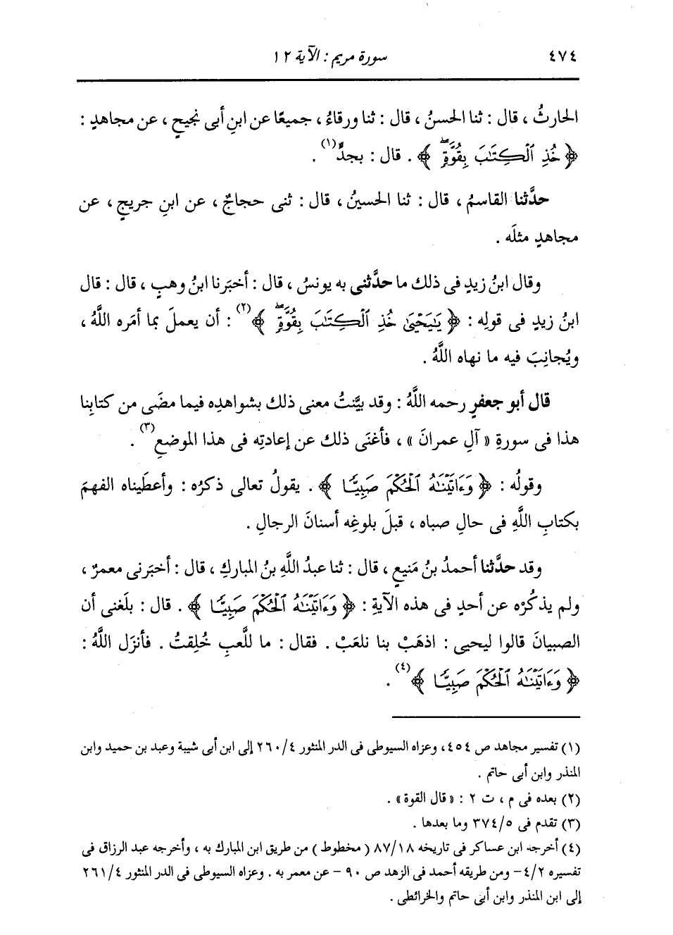 حَدَّثَنِي بِهِ، يُونُسُ، قَالَ: أَخْبَرَنَا ابْنُ وَهْبٍ، قَالَ: قَالَ ابْنُ زَيْدٍ، فِي قَوْلِهِ: {§يَا يَحْيَى خُذِ الْكِتَابَ بِقُوَّةٍ} [مريم: 12] قَالَ: الْقُوَّةُ: أَنْ يَعْمَلَ مَا أَمَرَهُ اللَّهُ بِهِ، وَيُجَانِبَ فِيهِ مَا نَهَاهُ اللَّهُ قَالَ أَبُو جَعْفَرٍ: وَقَدْ بَيَّنْتُ مَعْنَى ذَلِكَ بِشَوَاهِدِهِ فِيمَا مَضَى مِنْ كِتَابِنَا هَذَا، فِي سُورَةِ آلِ عِمْرَانَ، فَأَغْنَى ذَلِكَ عَنْ إِعَادَتِهِ فِي هَذَا الْمَوْضِعِ