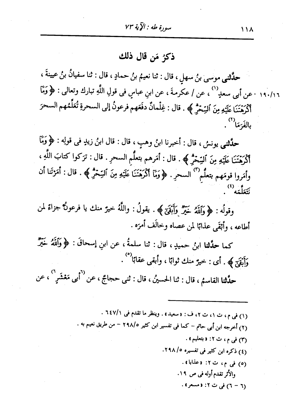 ذِكْرُ مَنْ قَالَ ذَلِكَ: حَدَّثَنِي مُوسَى بْنُ سَهْلٍ، قَالَ: ثنا نُعَيْمُ بْنُ حَمَّادٍ، قَالَ: ثنا سُفْيَانُ بْنُ عُيَيْنَةَ، عَنْ أَبِي سَعِيدٍ، عَنْ عِكْرِمَةَ، عَنِ ابْنِ عَبَّاسٍ، فِي قَوْلِ اللَّهِ تَبَارَكَ وَتَعَالَى: {§وَمَا أَكْرَهْتَنَا عَلَيْهِ مِنَ السِّحْرِ} [طه: 73] قَالَ: غِلْمَانٌ دَفَعَهُمْ فِرْعَوْنُ إِلَى السَّحَرَةِ، تُعَلِّمُهُمُ السِّحْرَ بِالْفَرَمَا