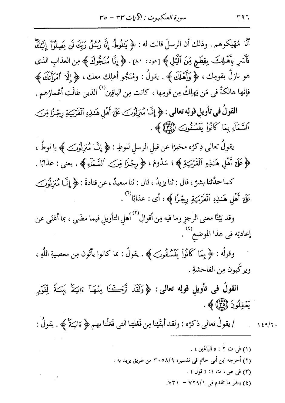 §الْقَوْلُ فِي تَأْوِيلِ قَوْلِهِ تَعَالَى: {إِنَّا مُنْزِلُونَ عَلَى أَهْلِ هَذِهِ الْقَرْيَةِ رِجْزًا مِنَ السَّمَاءِ بِمَا كَانُوا يَفْسُقُونَ} [العنكبوت: 34] يَقُولُ تَعَالَى ذِكْرُهُ مُخْبِرًا عَنْ قِيلِ الرُّسُلِ لِلُوطٍ {إِنَّا مُنْزِلُونَ} [العنكبوت: 34] يَا لُوطُ {عَلَى أَهْلِ هَذِهِ الْقَرْيَةِ} [العنكبوت: 34] سَدُومَ {رِجْزًا مِنَ الْسَّمَاءِ} [البقرة: 59] يَعْنِي عَذَابًا.