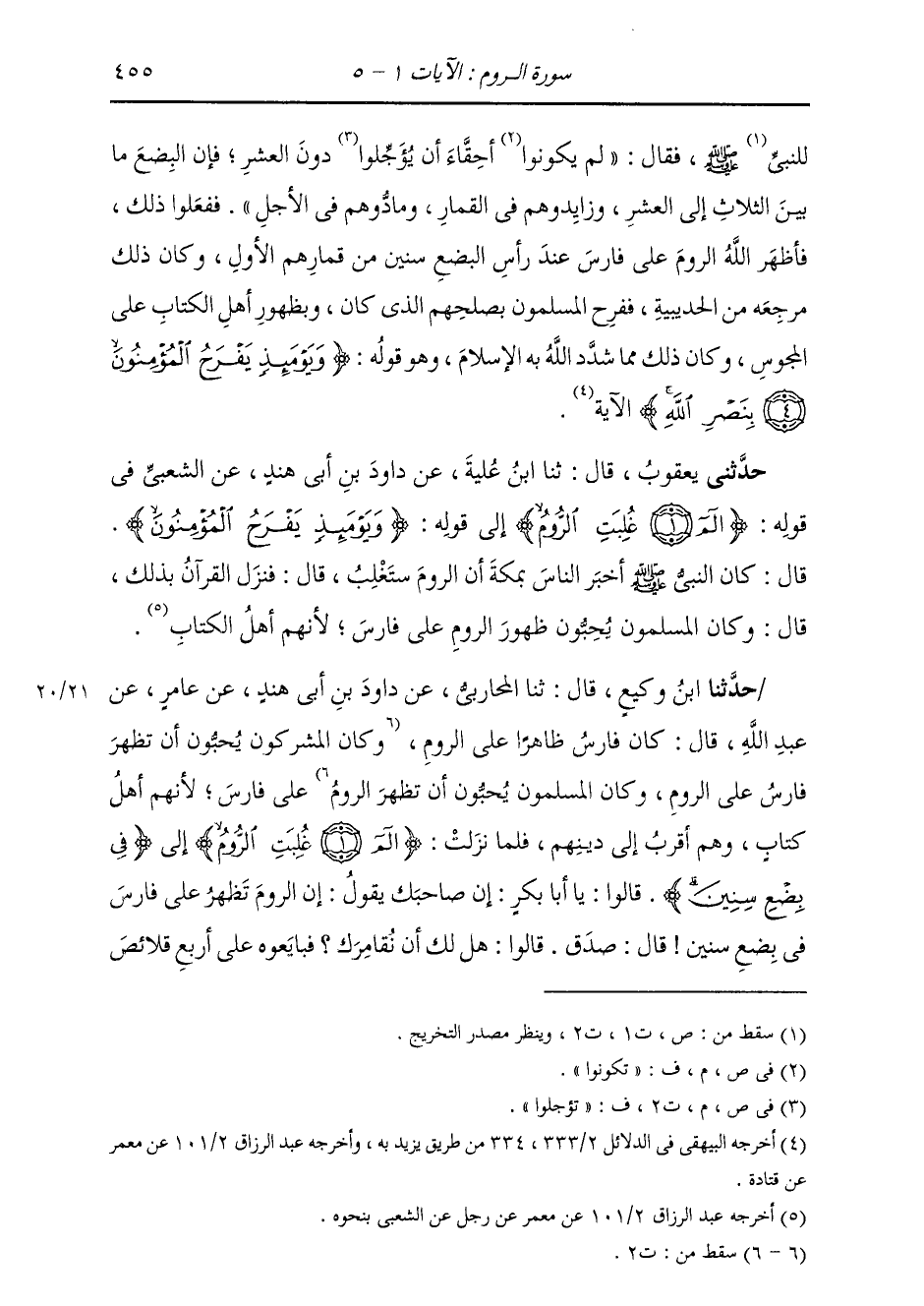 حَدَّثَنِي يَعْقُوبُ، قَالَ: ثنا ابْنُ عُلَيَّةَ، عَنْ دَاوُدَ بْنِ أَبِي هِنْدٍ، عَنِ الشَّعْبِيِّ، فِي قَوْلِهِ " {§الم. غُلِبَتِ الرُّومُ} [الروم: 2] إِلَى قَوْلِهِ {وَيَوْمَئِذٍ يَفْرَحُ الْمُؤْمِنُونَ} [الروم: 4] قَالَ: كَانَ النَّبِيُّ صَلَّى اللهُ عَلَيْهِ وَسَلَّمَ أَخْبَرَ النَّاسَ بِمَكَّةَ أَنَّ الرُّومَ سَتَغْلِبُ. قَالَ: فَنَزَلَ الْقُرْآنُ بِذَلِكَ، قَالَ: وَكَانَ الْمُسْلِمُونَ يُحِبُّونَ ظُهُورَ الرُّومِ عَلَى فَارِسَ، لِأَنَّهُمْ أَهْلُ الْكِتَابِ "