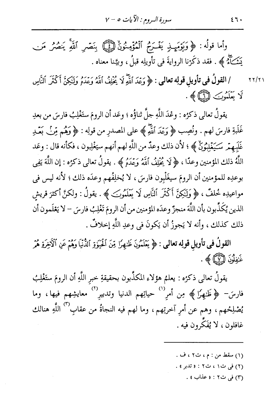 §الْقَوْلُ فِي تَأْوِيلِ قَوْلِهِ تَعَالَى: {يَعْلَمُونَ ظَاهِرًا مِنَ الْحَيَاةِ الدُّنْيَا، وَهُمْ عَنِ الْآخِرَةِ هُمْ غَافِلُونَ} [الروم: 7] يَقُولُ تَعَالَى ذِكْرُهُ: يَعْلَمُ هَؤُلَاءِ الْمُكَذِّبُونَ بِحَقِيقَةِ خَبَرِ اللَّهِ أَنَّ الرُّومَ سَتَغْلِبُ فَارِسَ ظَاهِرًا مِنْ حَيَاتِهِمُ الدُّنْيَا، وَتَدْبِيرِ مَعَايِشَهُمْ فِيهَا، وَمَا يُصْلِحُهُمْ، وَهُمْ عَنْ أَمْرِ آخِرَتِهِمْ، وَمَا لَهُمْ فِيهِ النَّجَاةُ مِنْ عِقَابِ اللَّهِ هُنَالِكَ غَافِلُونَ، لَا يُفَكِّرُونَ فِيهِ. -[461]- وَبِنَحْوِ الَّذِي قُلْنَا فِي ذَلِكَ: قَالَ أَهْلُ التَّأْوِيلِ.