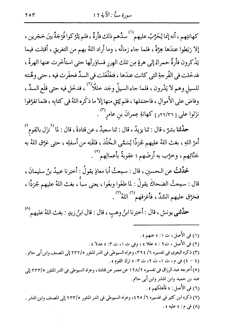 حُدِّثْتُ عَنِ الْحُسَيْنِ، قَالَ: سَمِعْتُ أَبَا مُعَاذٍ، يَقُولُ: أَخْبَرَنَا عُبَيْدُ بْنُ سُلَيْمَانَ، قَالَ: سَمِعْتُ الضَّحَّاكَ، يَقُولُ: «§لَمَّا طَغَوْا وَبَغَوْا، يَعْنِي سَبَأً، بَعَثَ اللَّهُ عَلَيْهِمْ جُرَذًا، فَخَرَقَ عَلَيْهِمُ السَّدَّ، فَأَغْرَقَهُمُ اللَّهُ»