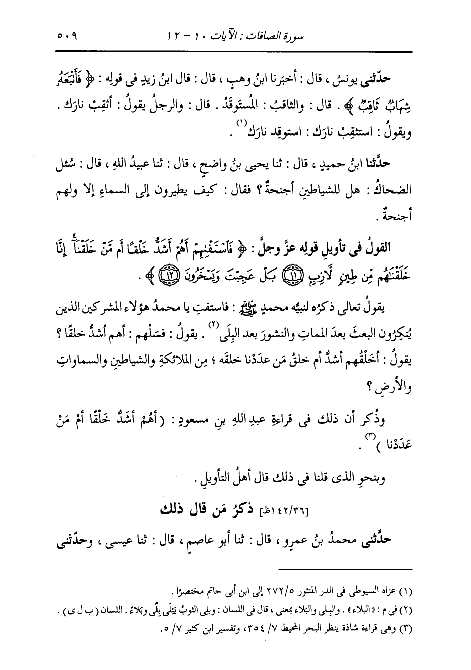 حَدَّثَنِي يُونُسُ، قَالَ: أَخْبَرَنَا ابْنُ وَهْبٍ، قَالَ: قَالَ ابْنُ زَيْدٍ، فِي قَوْلِهِ: {§فَأَتْبَعَهُ شِهَابٌ ثَاقِبٌ} [الصافات: 10] قَالَ: " وَالثَّاقِبُ: الْمُسْتَوْقَدُ؛ قَالَ: وَالرَّجُلُ يَقُولُ: أَثْقِبْ نَارَكَ، وَيَقُولُ: اسْتَثْقِبْ نَارَكَ: اسْتَوْقِدْ نَارَكَ "