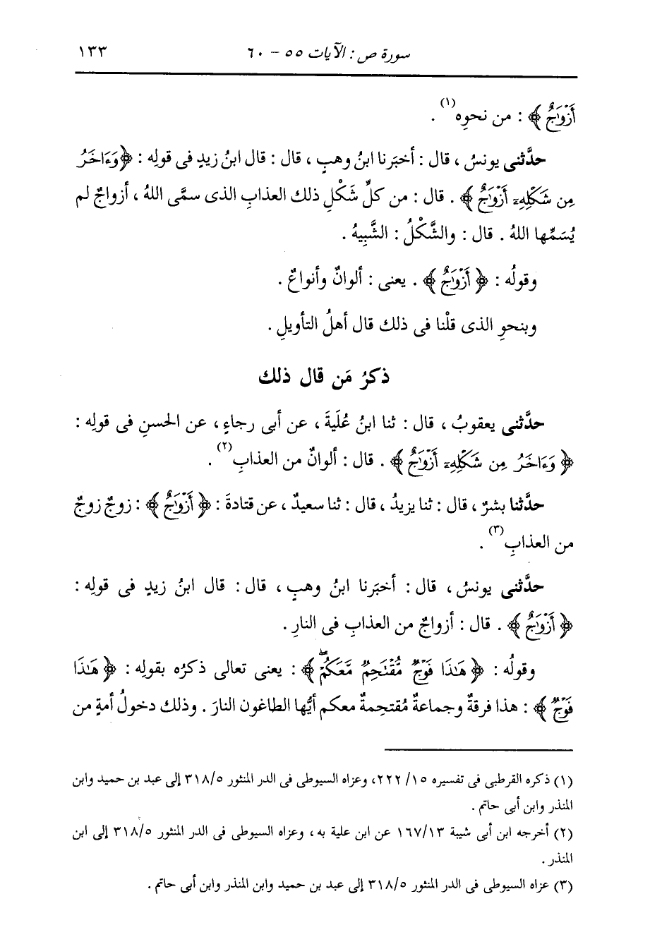 حَدَّثَنِي يُونُسُ، قَالَ: أَخْبَرَنَا ابْنُ وَهْبٍ، قَالَ: قَالَ ابْنُ زَيْدٍ، فِي قَوْلِهِ: {§أَزْوَاجٌ} [ص: 58] قَالَ: «أَزْوَاجٌ مِنَ الْعَذَابِ فِي النَّارِ»