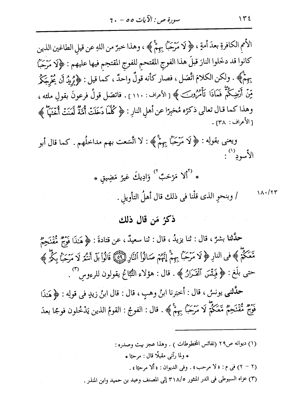 حَدَّثَنِي يُونُسُ، قَالَ: أَخْبَرَنَا ابْنُ وَهْبٍ، قَالَ: قَالَ ابْنُ زَيْدٍ، فِي قَوْلِهِ: {§هَذَا فَوْجٌ مُقْتَحِمٌ مَعَكُمْ لَا مَرْحَبًا بِهِمْ} [ص: 59] قَالَ: " الْفَوْجُ: الْقَوْمُ الَّذِينَ يَدْخُلُونَ فَوْجًا بَعْدَ -[135]- فَوْجٍ " وَقَرَأَ: {كُلَّمَا دَخَلَتْ أُمَّةٌ لَعَنَتْ أُخْتَهَا} [الأعراف: 38] الَّتِي كَانَتْ قَبْلَهَا "
