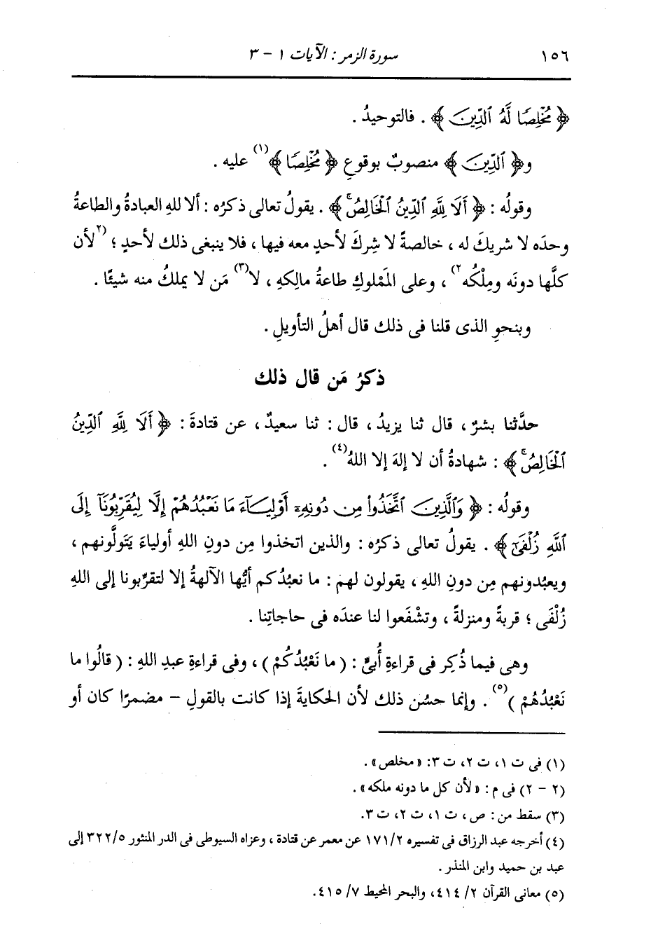 ذِكْرُ مَنْ قَالَ ذَلِكَ: حَدَّثَنَا بِشْرٌ، قَالَ: ثنا يَزِيدُ، قَالَ: ثنا سَعِيدٌ، عَنْ قَتَادَةَ، {§أَلَا لِلَّهِ الدِّينُ الْخَالِصُ} [الزمر: 3] «شَهَادَةُ أَنَّ لَا إِلَهَ إِلَّا اللَّهُ»