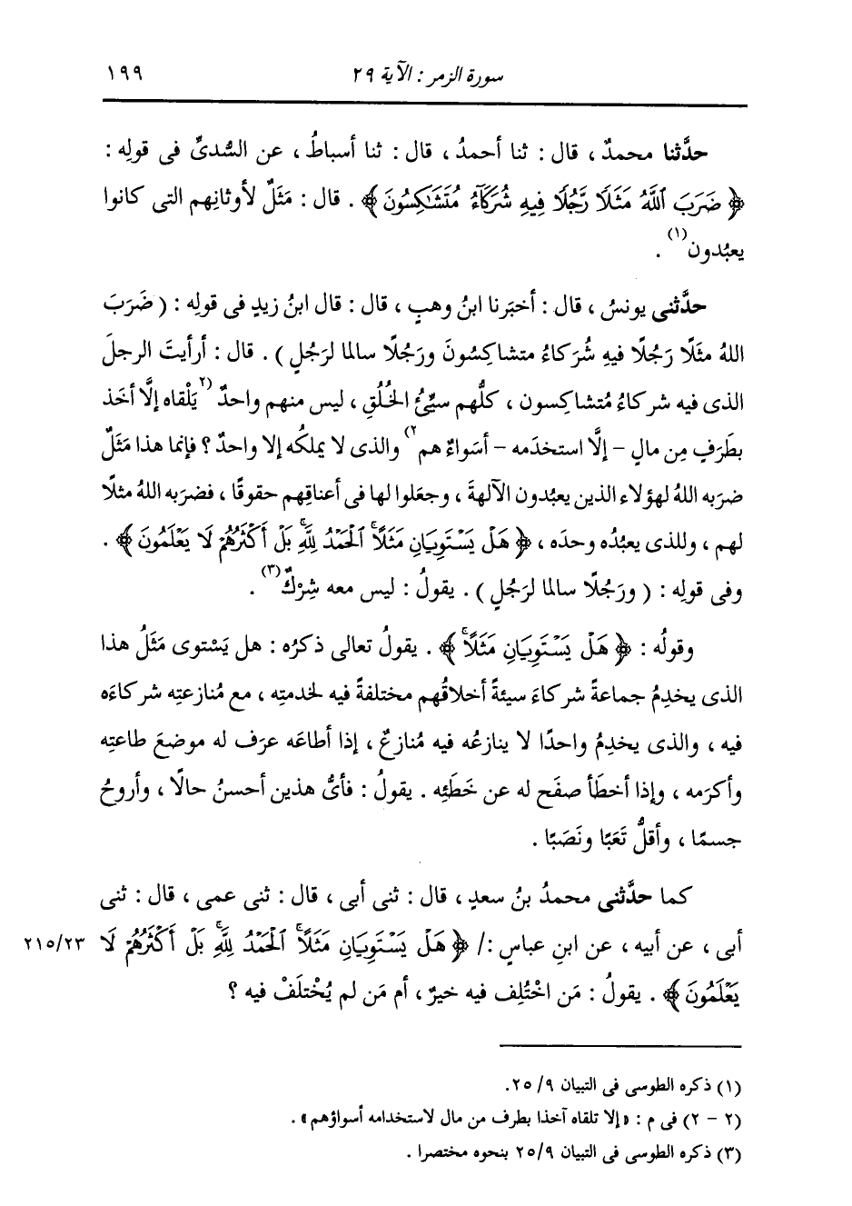 حَدَّثَنَا مُحَمَّدٌ، قَالَ: ثنا أَحْمَدُ، قَالَ: ثنا أَسْبَاطٌ، عَنِ السُّدِّيِّ، فِي قَوْلِهِ: {§ضَرَبَ اللَّهُ مَثَلًا رَجُلًا فِيهِ شُرَكَاءُ مُتَشَاكِسُونَ} [الزمر: 29] قَالَ: «مَثَلٌ لَأَوْثَانِهِمُ الَّتِي كَانُوا يَعْبُدُونَ»
