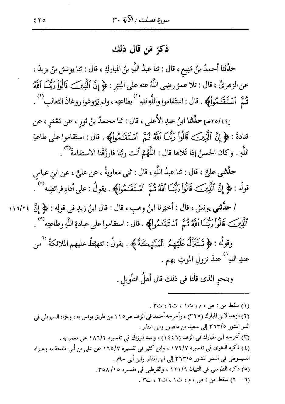 حَدَّثَنِي يُونُسُ، قَالَ: أَخْبَرَنَا ابْنُ وَهْبٍ، قَالَ: قَالَ ابْنُ زَيْدٍ، فِي قَوْلِهِ: {§إِنَّ الَّذِينَ قَالُوا رَبُّنَا اللَّهُ ثُمَّ اسْتَقَامُوا} [فصلت: 30] قَالَ: «عَلَى عِبَادَةِ اللَّهِ وَعَلَى طَاعَتِهِ»