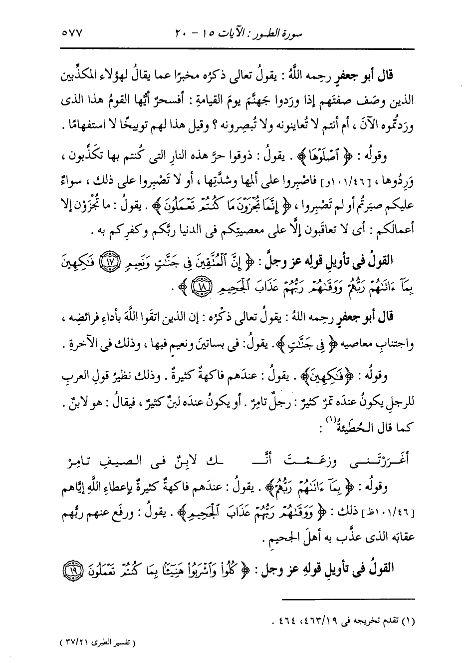 كتاب تفسير الطبري = جامع البيان ط هجر (اسم الجزء: 21)