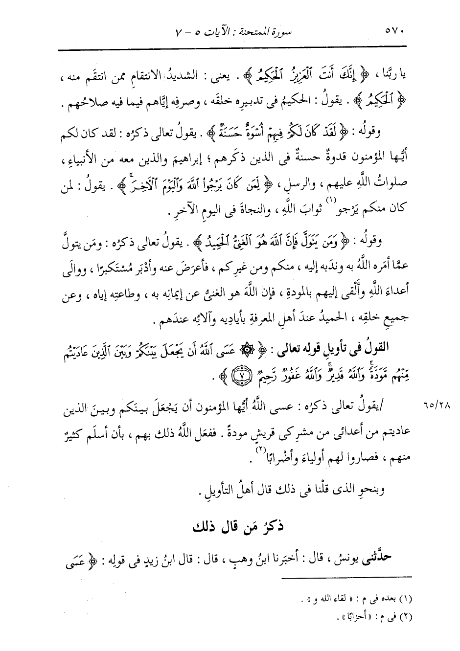 ذِكْرُ مَنْ قَالَ ذَلِكَ حَدَّثَنِي يُونُسُ، قَالَ: أَخْبَرَنَا ابْنُ وَهْبٍ، قَالَ: قَالَ ابْنُ زَيْدٍ، فِي قَوْلِهِ: {§عَسَى -[571]- اللَّهُ أَنْ يَجْعَلَ بَيْنَكُمْ وَبَيْنَ الَّذِينَ عَادَيْتُمْ مِنْهُمْ مَوَدَّةً} [الممتحنة: 7] قَالَ: هَؤُلَاءِ الْمُشْرِكُونَ قَدْ فَعَلَ، قَدْ أَدْخَلَهُمْ فِي السِّلْمِ وَجَعَلَ بَيْنَهُمْ مَوَدَّةً حِينَ كَانَ الْإِسْلَامُ حِينَ الْفَتْحِ