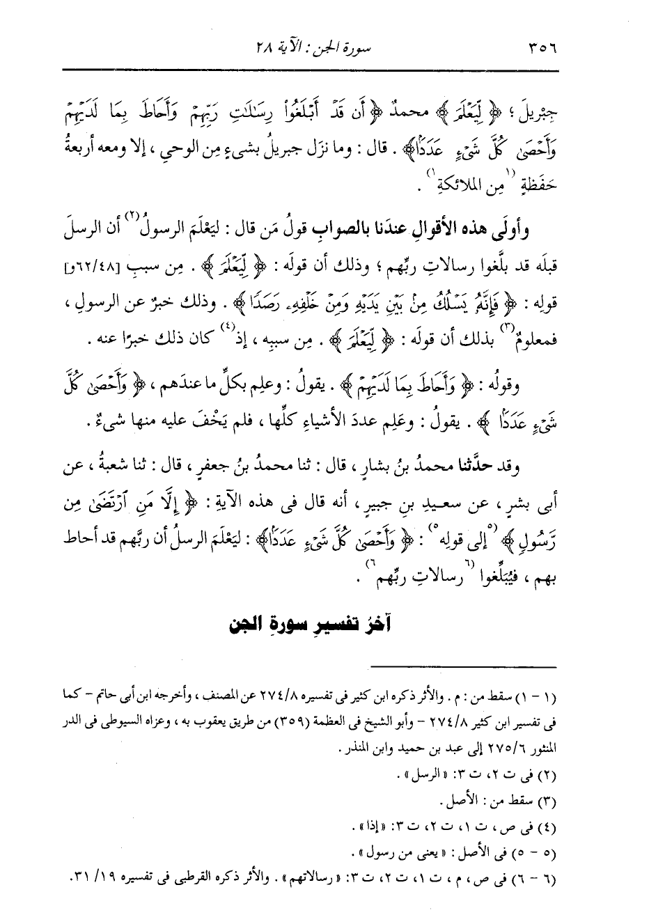 وَقَدْ: حَدَّثَنَا مُحَمَّدُ بْنُ بَشَّارٍ، قَالَ: ثنا مُحَمَّدُ بْنُ جَعْفَرٍ، قَالَ: ثنا شُعْبَةُ، عَنْ أَبِي بِشْرٍ، عَنْ سَعِيدِ بْنِ جُبَيْرٍ، أَنَّهُ قَالَ فِي هَذِهِ الْآيَةِ {§إِلَّا مَنِ ارْتَضَى مِنْ رَسُولٍ} [الجن: 27] إِلَى قَوْلِهِ: {وَأَحْصَى كُلَّ شَيْءٍ عَدَدًا} [الجن: 28] قَالَ: لِيَعْلَمَ الرُّسُلُ أَنَّ رَبَّهُمْ أَحَاطَ بِهِمْ، فَبَلَّغُوا رِسَالَاتِهِمْ