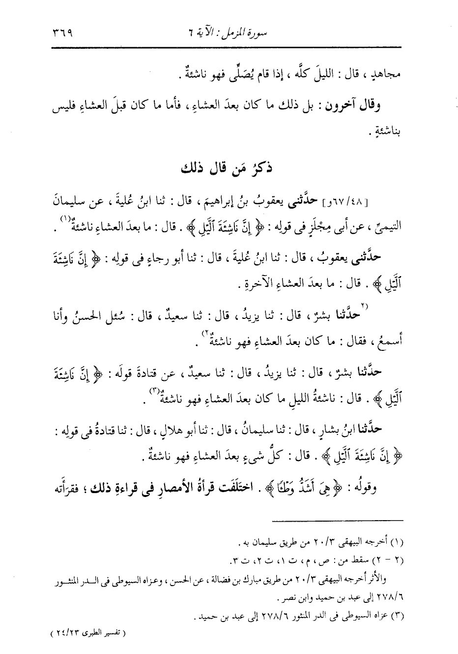 قَالَ: ثنا ابْنُ عُلَيَّةَ، قَالَ: ثنا أَبُو رَجَاءٍ، فِي قَوْلِهِ: {§إِنَّ نَاشِئَةَ اللَّيْلِ} [المزمل: 6] قَالَ: مَا بَعْدَ الْعِشَاءِ الْآخِرَةِ