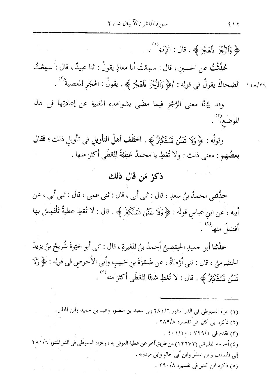حَدَّثَنَا أَبُو حُمَيْدٍ الْحِمْصِيُّ أَحْمَدُ بْنُ الْمُغِيرَةِ، قَالَ: ثني أَبُو حَيْوَةَ شُرَيْحُ بْنُ يَزِيدَ الْحَضْرَمِيُّ، قَالَ: ثني أَرْطَاةُ، عَنْ ضَمْرَةَ بْنِ حَبِيبٍ وَأَبِي الْأَحْوَصِ، فِي قَوْلِهِ: {وَلَا تَمْنُنْ تَسْتَكْثِرُ} [المدثر: 6] قَالَ: §لَا تُعْطِ شَيْئًا، لَتُعْطَى أَكْثَرَ مِنْهُ