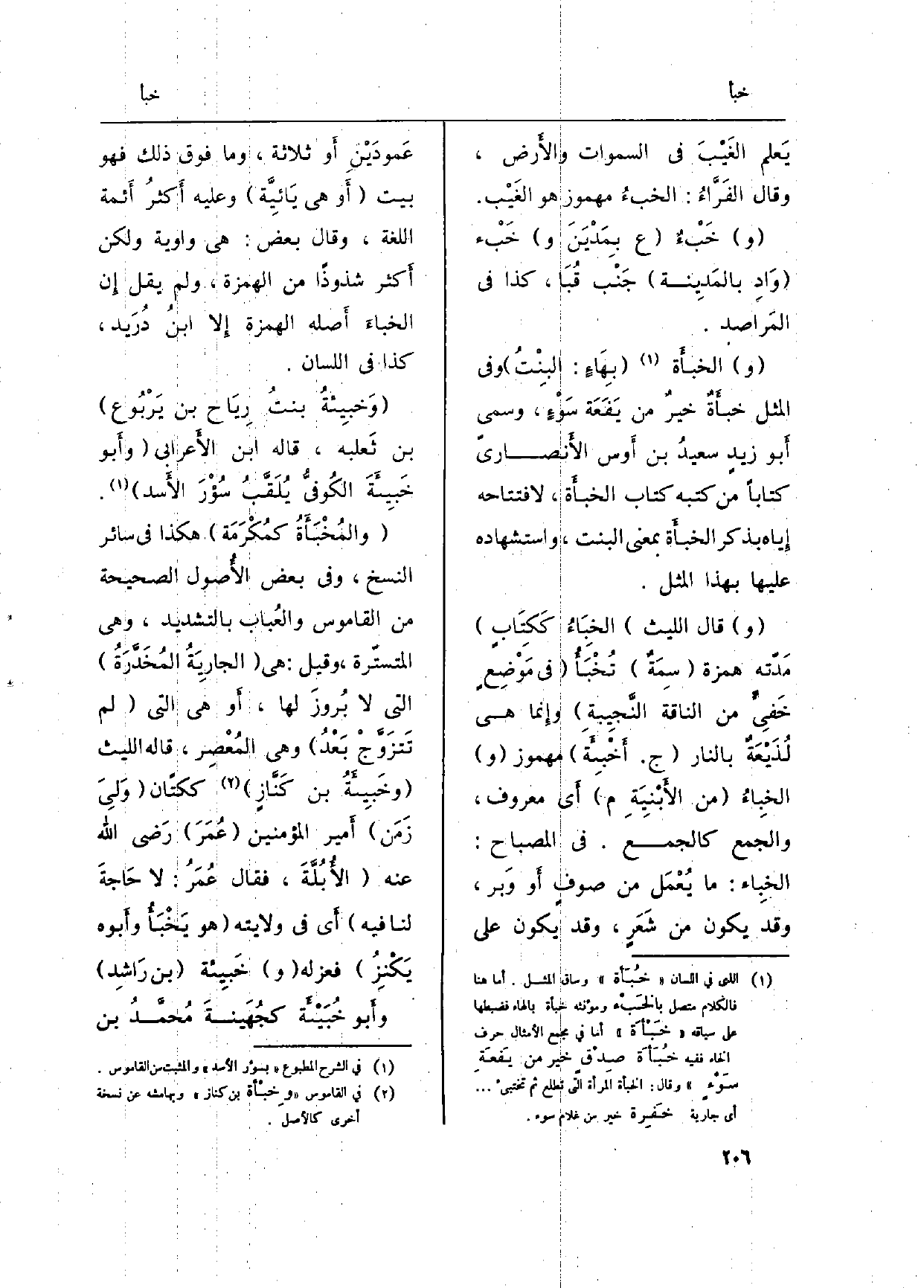 يَعلم الغَيْبَ فِي السَّمَوَات والأَرض وَقَالَ الفَرَّاء: الخبءُ مَهْمُوز هُوَ الغَيْب.