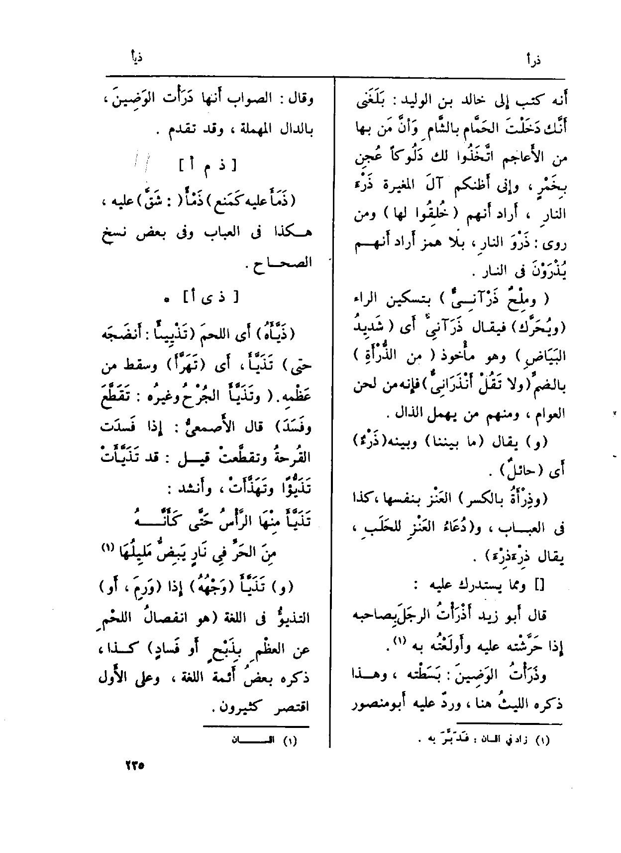 أَنه كتب إِلى خَالِد بن الْوَلِيد: بَلَغَني أَنَّك دَخَلْتَ الحَمَّام بالشَّام وَأَنَّ مَن بهَا من الأَعاجم اتَّخَذُوا لَك دَلُوكاً عُجِن بِخَمْرٍ، وإِني أَظنكم آلَ الْمُغيرَة ذَرْءَ النارِ، أَراد أَنهم (خُلِقُوا لَهَا) وَمن روى: ذَرْوَ النارِ، بِلَا همز أَراد أَنهم يُذْرَوْنَ فِي النَّار.
