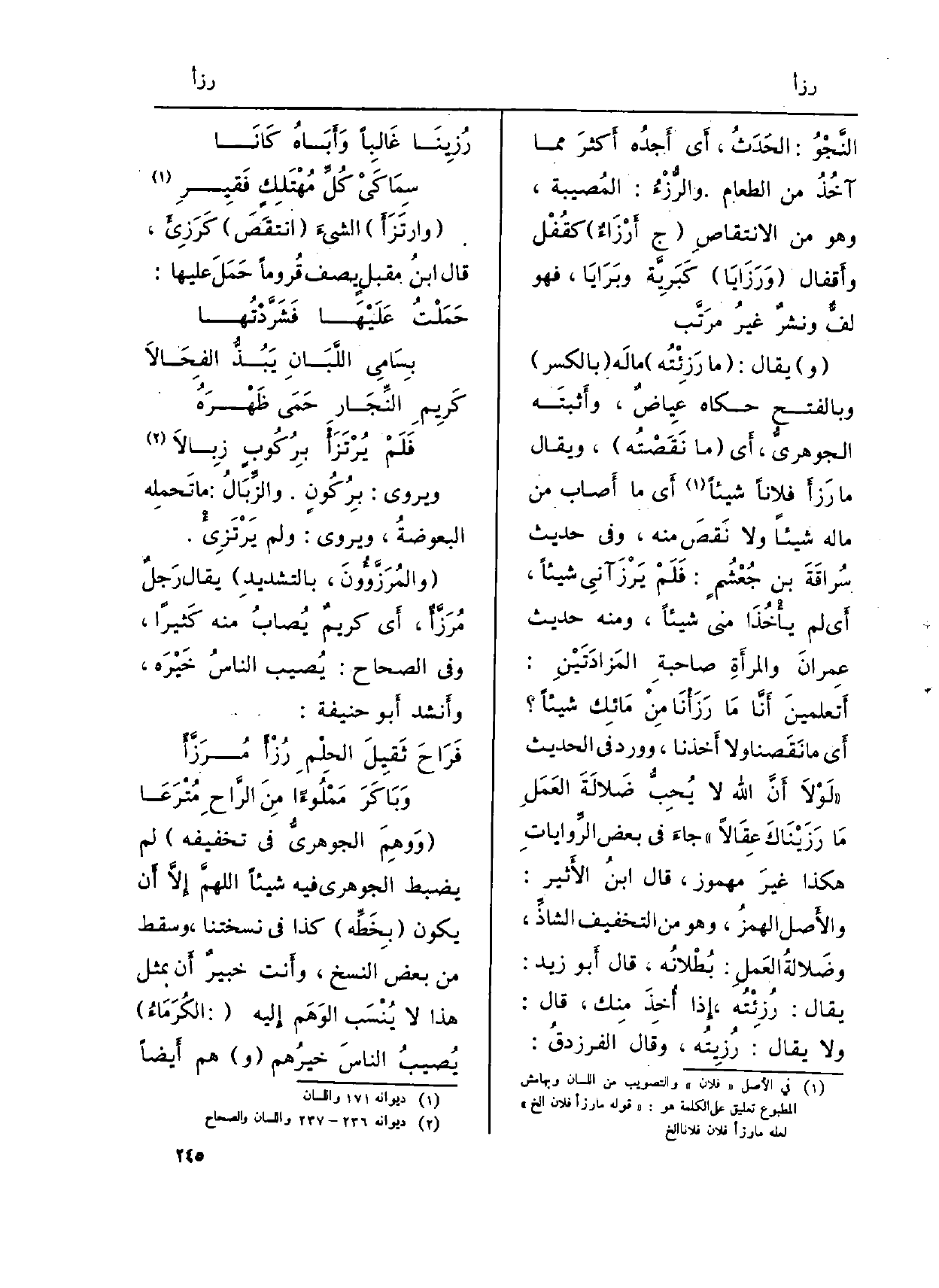 (وارتَزَأَ) الشيءَ (انتقَصَ) {كَرَزِىءَ، قَالَ ابنُ مقبلٍ يصف قُروماً حَمَلَ عَلَيْهَا: