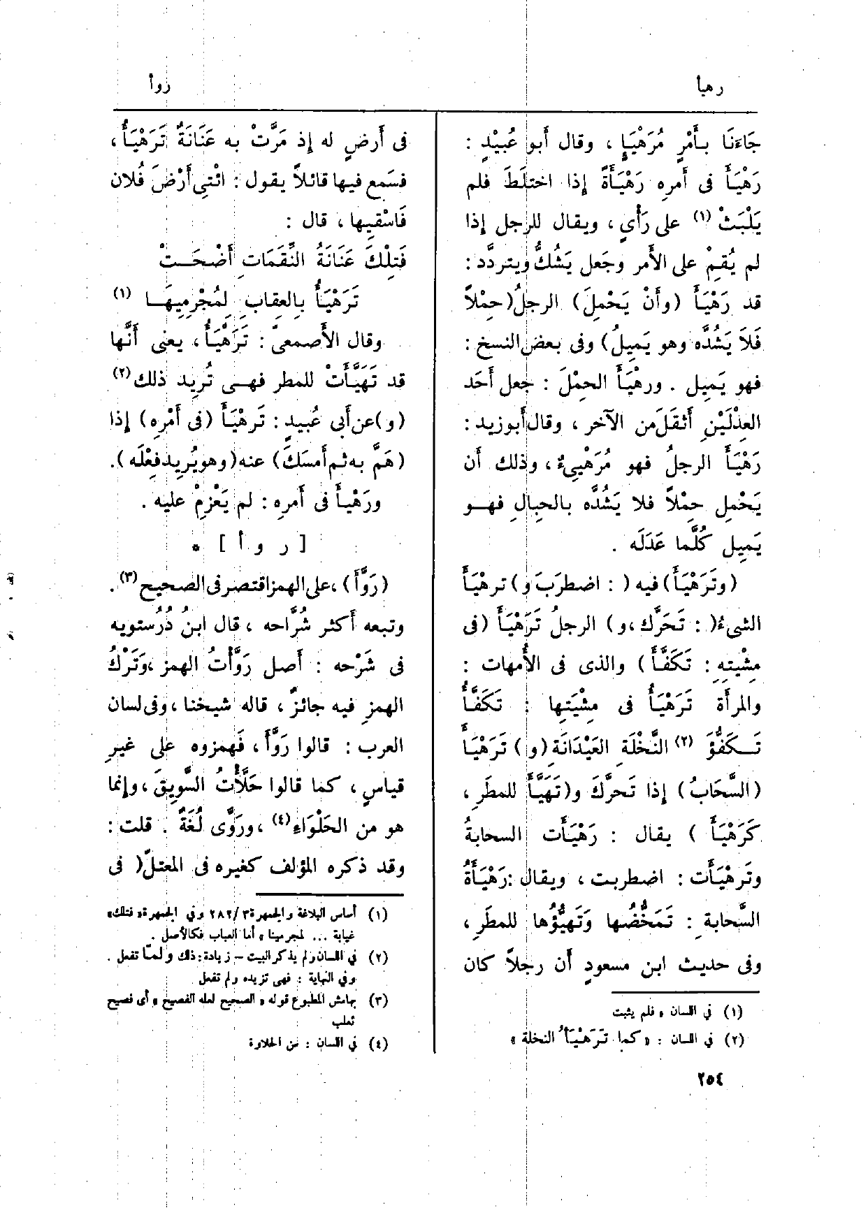 : (! رَوَّأَ) ، على الْهَمْز اقْتصر فِي الصَّحِيح. وَتَبعهُ أَكثر شُرَّاحه، قَالَ ابنُ دُرُستويه فِي (شَرْحه) : أَصل رَوَّأْتُ الْهَمْز، وَتَرْكُ الهمزِ فِيهِ جائزٌ، قَالَه شَيخنَا، وَفِي (لِسَان الْعَرَب) : قَالُوا رَوَّأَ، فَهمزوه على غثر قياسٍ، كَمَا قَالُوا حَلأْتُ السَّوِيقَ، وإِنما هُوَ من الحَلْوَاءِ، ورَوَّي لُغَةٌ. قلت: وَقد ذكره الْمُؤلف كَغَيْرِهِ فِي المعتلّ (فِي