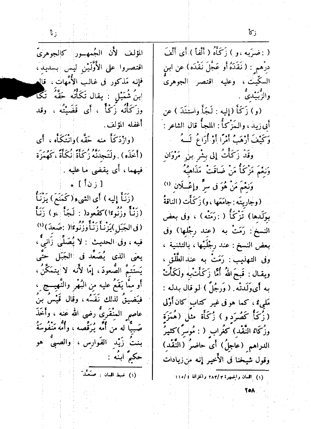 (وجارِيتَه: جامَعَها، و) زَكَأْت (الناقةُ بِوَلَدِها) } تَزْكَأُ (: رَمَتْه) ، وَفِي بعض النّسخ: رَمَتْ بِهِ (عِند رِجْلِها) وَفِي بعض النّسخ: عِنْد رِجْلَيْها، بالتثنية، وَفِي (التَّهْذِيب) : رَمَتْ بِهِ عِنْد الطَّلْقِ، وَيُقَال: قَبحَ اللَّهُ أُمًّا زَكَأَتْ بِه ولَكَأَتْ بِهِ أَي وَلَدتْه. (وَرجُلٌ) لَو قَالَ بدله: مَلِيءٌ، كَمَا هُوَ فِي غير كتابٍ كَانَ أَوْلى ( {زُكَأٌ كَصُرَدٍ و) } زُكَأَة مثل (هُمَزَةٍ {وزُكَاءُ النَّقْدِ) (: مُوسِرٌ) كثيرُ الدَّرَاهِم (عاجلُ) أَي حاضرُ (النَّقْدِ) وَقَول شَيخنَا فِي الأَخير إِنه من زيادات الْمُؤلف لأَن الجُمهور كالجوهريّ اقتصروا على الأَوَّلَيْنِ لَيْسَ بسديدِ، فإِنه مَذكور فِي غَالب الأُمَّهاتِ، قَالَ ابنُ شُمَيْلٍ: يُقَال تَكَأْتُه حَقَّهُ تَكْأً} وزَكَأْتَه زَكْأً، أَي قَضَيْتُه، وَقد أَغفله الْمُؤلف.