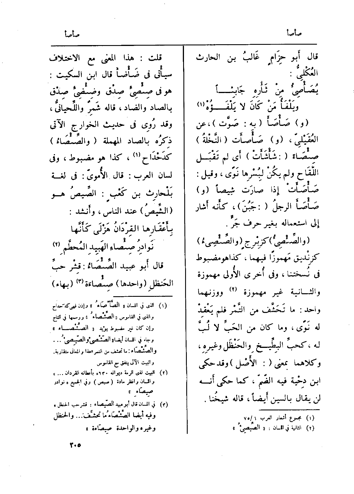قلت: هَذَا الْمَعْنى مَعَ الِاخْتِلَاف سيأْتي فِي ضَأْضأَ قَالَ ابْن السّكيت: هُوَ فِي} صِئْصِىءِ صِدْق وضِئْضِيءِ صِدْق بالصَّاد وَالضَّاد، قَالَه شَمِرٌ واللِّحيانيُّ، وَقد رُوِي فِي حَدِيث الْخَوَارِج الْآتِي ذكرُه بالصَّاد الْمُهْملَة ( {والصِّئْصَاءُ) كدَحْدَح، كَذَا هُوَ مضبوط، وَفِي (لِسَان الْعَرَب) : قَالَ الأُمويّ: فِي لُغَة بَلْحارِث بن كَعْبٍ: الصِّيصُ هُوَ (الشِّيصُ) عِنْد النَّاس، وأَنشد: