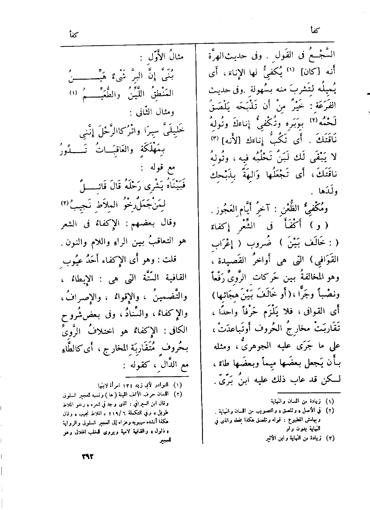 وَقَالَ بَعضهم: الإِكفاءُ فِي الشّعْر هُوَ التعاقبُ بِي الراءِ وَاللَّام وَالنُّون.
