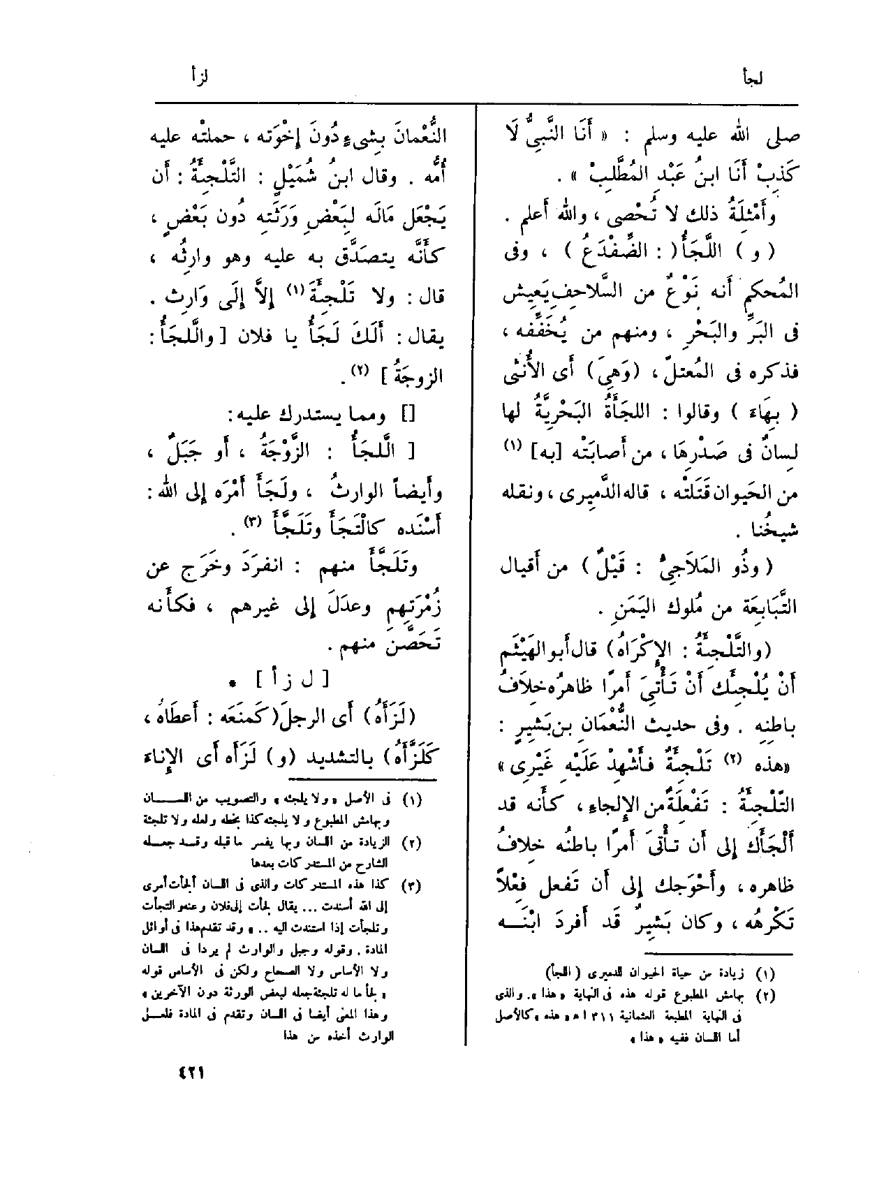 ( {والتَّلْجِئَةُ: الإِكْرَاهُ) قَالَ أَبو الهَيْثَم أَنْ} يُلْجِئَك أَنْ تَأْتِيَ أَمراً ظاهرُه خِلاَفُ بَاطِنه. وَفِي حَدِيث النُّعْمَانِ بن بَشِيرٍ: (هَذِه {تَلْجِئَةٌ فأَشْهِدْ عَلَيْهِ غَيْرِي) } التّلْجِئَةُ: تَفْعِلَةٌ من {الإِلجاءِ، كأَنه قد} أَلْجَأَك إِلى أَن تأْتيَ أَمراً باطنُه خِلافُ ظَاهره، وأَحْوَجك إِلى أَن تَفعل فِعْلاً تَكْرهُه، وَكَانَ بَشِيرٌ قَد أَفردَ ابْنَه النُّعْمانَ بِشيءٍ دُونَ إِخْوَته، حملتْه عَلَيْهِ أُمُّه. وَقَالَ ابنُ شُمَيْلٍ: {التَّلْجِئَةُ: أَن يَجْعَل مَالَه لِبَعحضِ وَرَثَتِه دُون بَعْضٍ، كأَنَّه يتصَدَّق بِهِ عَلَيْهِ وَهُوَ وارِثُه، قَالَ: وَلَا} تَلْجِئَةَ إِلاَّ إِلَى وَارِث. يُقَال: أَلَكَ لَجَأُ يَا فلَان (واللَّجَأُ: الزوجَةُ) .