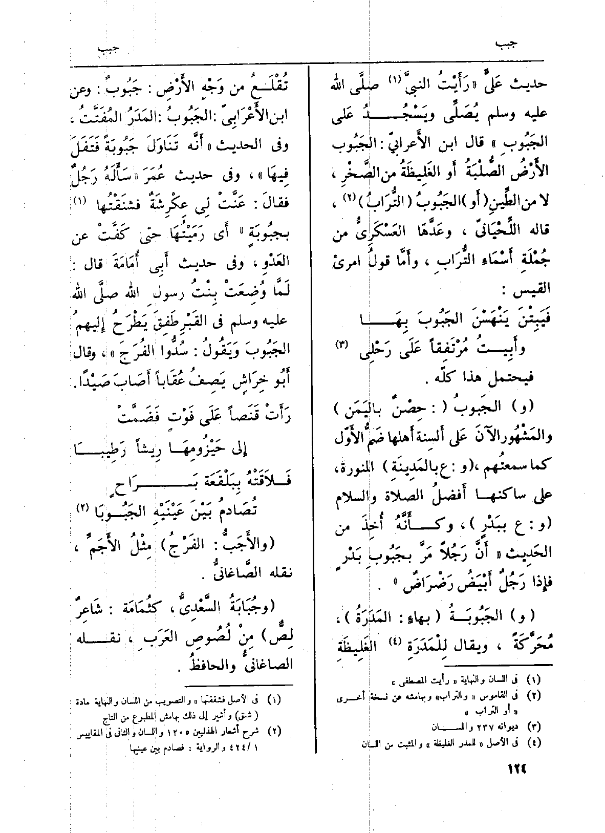حَدِيث عَليَ (رَأَيْتُ النبيَّ صلى الله عَلَيْهِ وسلميُصَلِّي ويَسْجُدُ عَلى الجَبُوبِ) قَالَ ابْن الأَعرابيّ: الجَبُوب الأَرْضُ الصُّلْبَةُ أَو الغَلِيظَةُ من الصَّخْرِ، لَا من الطِّينِ (أَو) الجَبُوبُ (التُّرَابُ) ، قَالَه اللِّحْيَانيّ، وعَدَّهَا العَسْكَرِيُّ من جُمْلَةِ أَسْمَاءِ التُّرَابِ، وأَمَّا قولُ امرىء الْقَيْس: