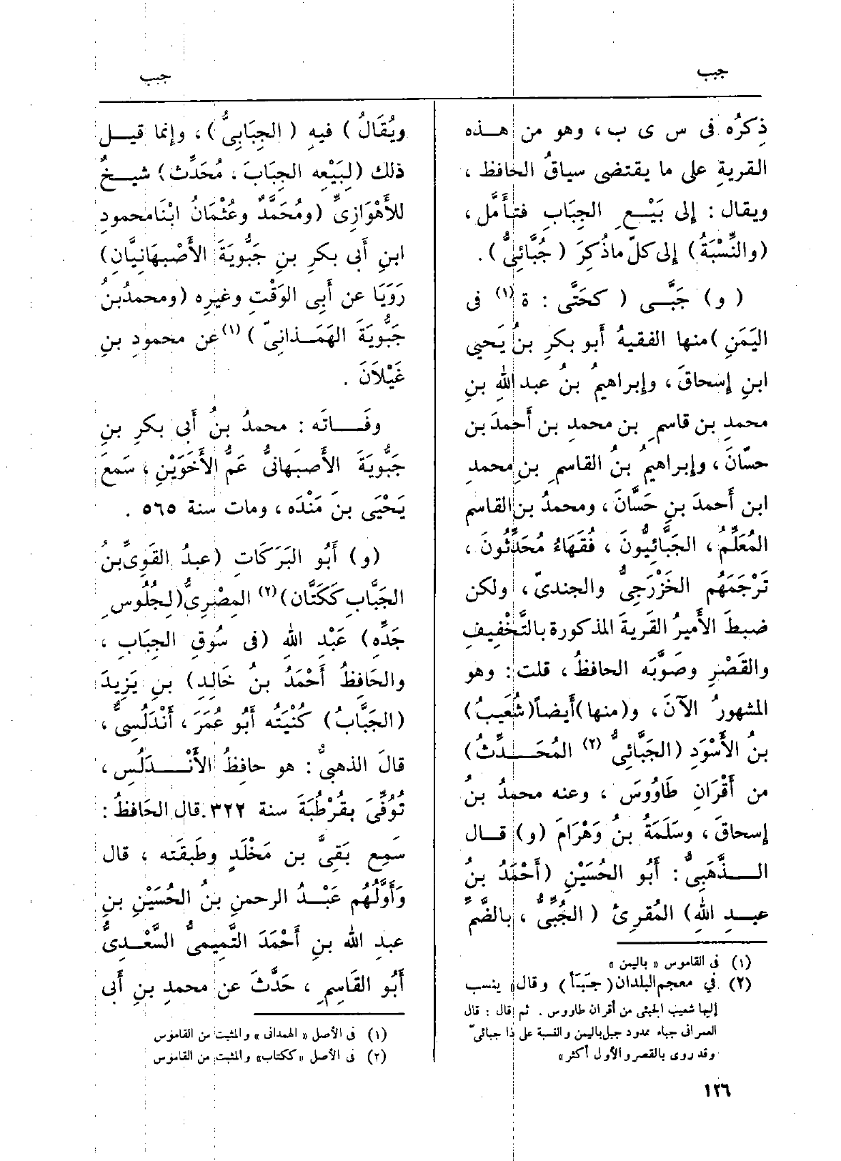 ذِكرُه فِي سيب، وَهُوَ من هَذِه القريةِ على مَا يَقْتَضِي سياقُ الْحَافِظ، وَيُقَال: إِلى بَيْعِ الجِبَابِ فتأَمَّل، (والنِّسْبَةُ) إِلى كلّ مَا ذُكِرَ ( {- جُبَّائِيُّ) .