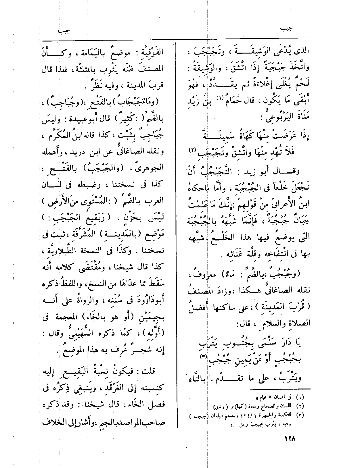 ( {وجُبْجُبٌ، بالضَّمِّ: مَاءٌ) معروفٌ، نَقله الصاغانيُّ هَكَذَا، وزادَ المصنفُ (قُرْبَ المَدِينَةِ) ، على ساكنها أَفضلُ الصلاةِ والسلامِ، قَالَ: