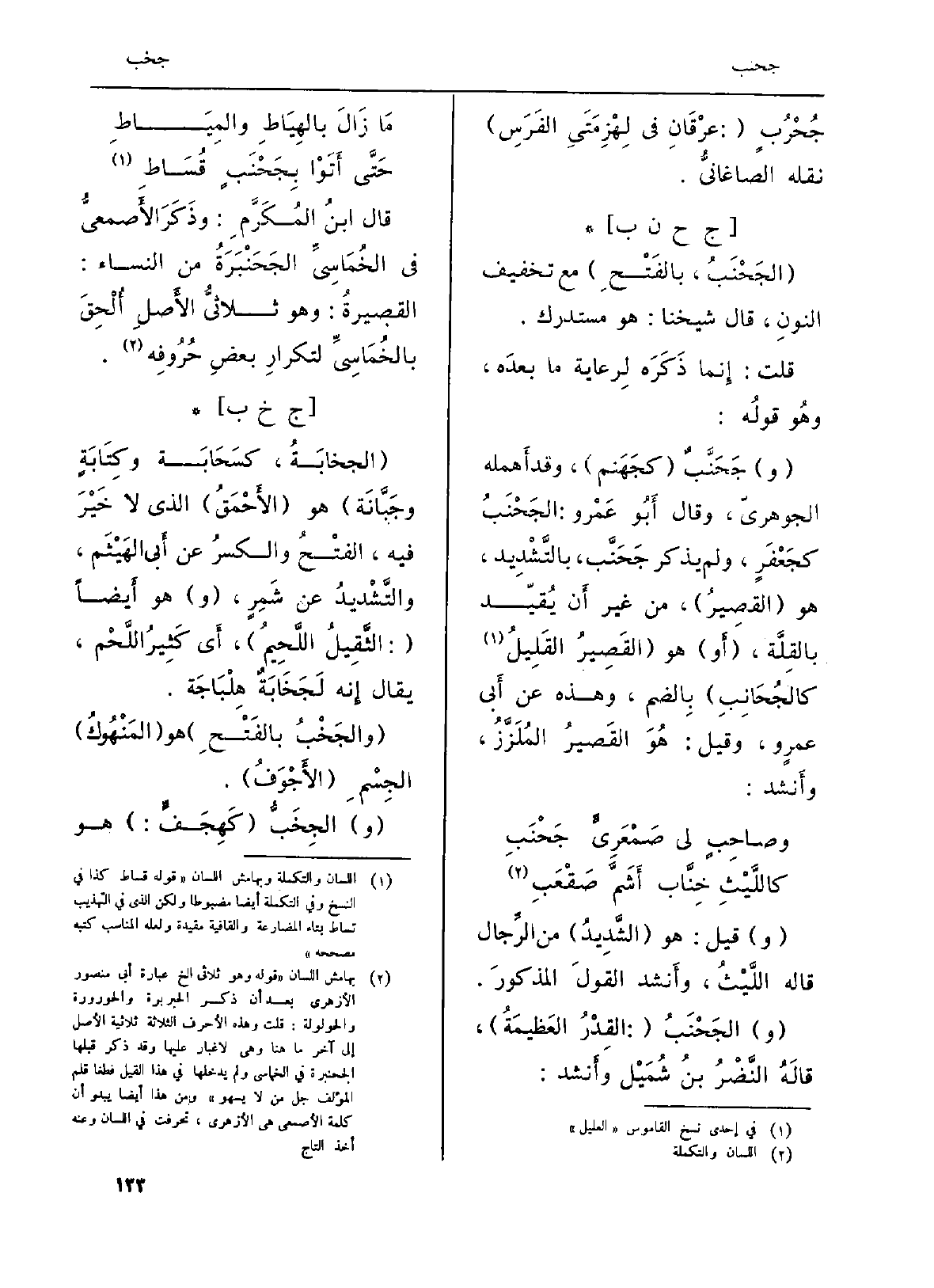 (و) جَحَنَّبٌ (كجَهَنم) ، وَقد أَهمله الجوهريّ، وَقَالَ أَبُو عَمْرو: الجَحْنَبُ كجَعْفَرٍ، وَلم يذكر جَحَنَّب، بالتَّشْدِيدِ، هُوَ (القصِيرُ) ، من غير أَن يُقيّد بالقِلَّة، (أَو) هُوَ (القَصِيرُ القَلِيلُ كالجُحَانِبِ) بِالضَّمِّ، وَهَذِه عَن أَبي عمرٍ و، وَقيل: هُوَ القَصيرُ المُلَزَّزُ، وأَنشد: