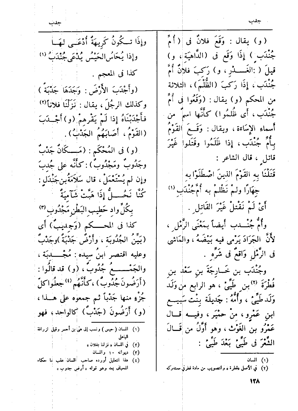 وأُمُّ جُنْدَب أَيضاً بمَعْنَى الرَّمْلِ، لأَنَّ الجَرَادَ يَرْمي فِيهِ بَيْضَهُ، والمَاشي فِي الرَّمْلِ وَاقعٌ فِي شَرِّهِ.