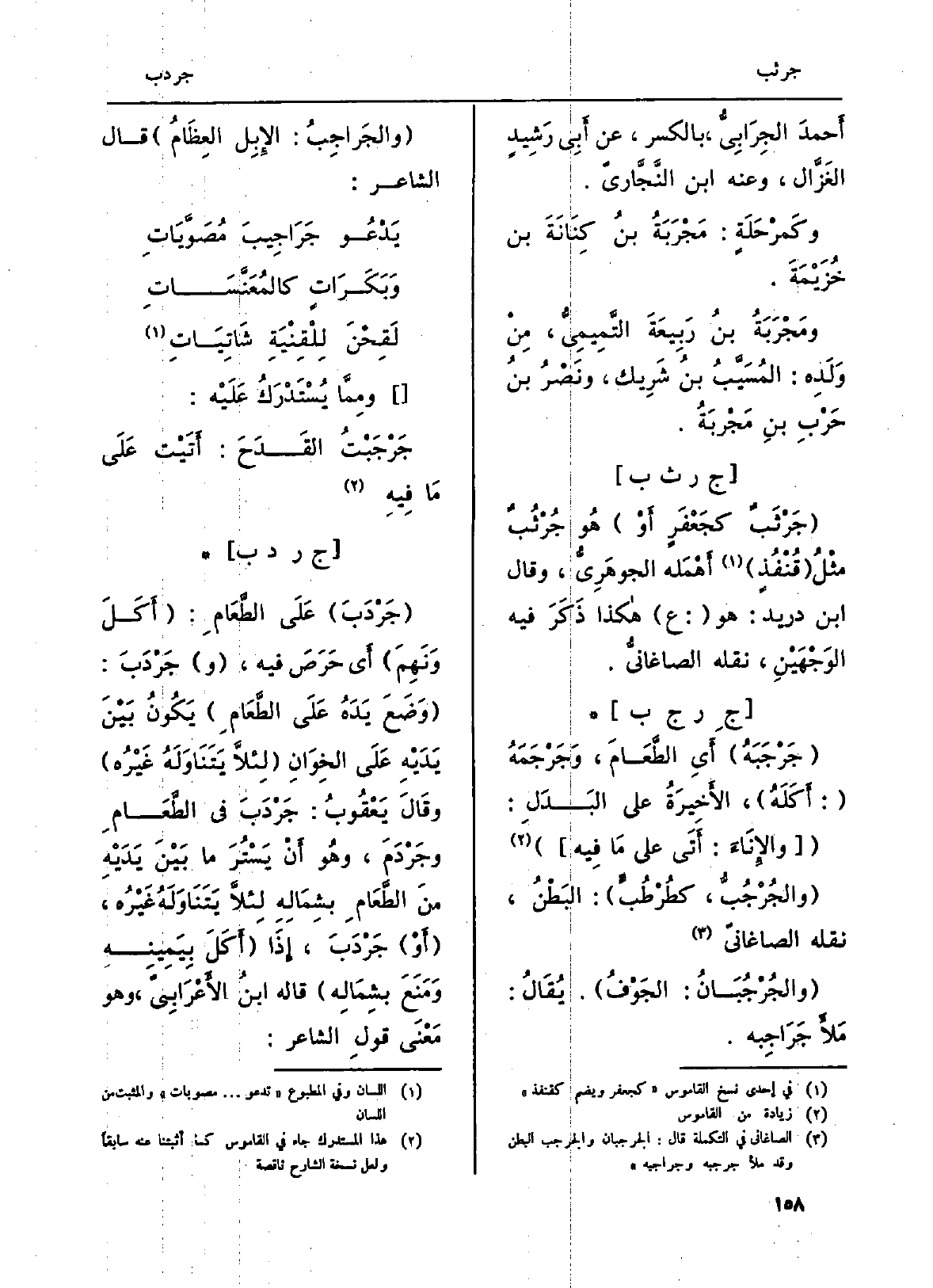 (والجَراجِبُ: الإِبِل العِظَامُ) قَالَ الشَّاعِر: