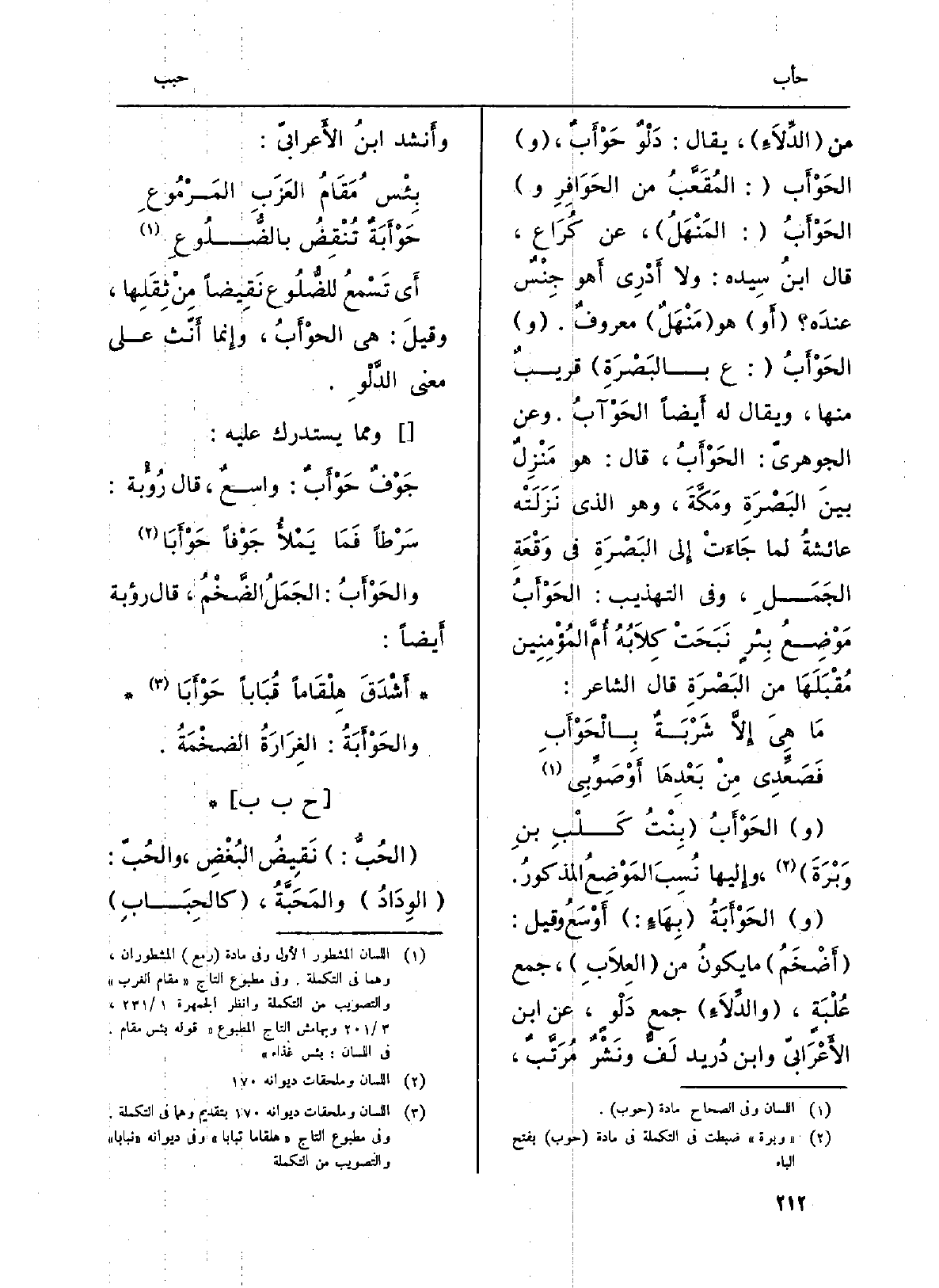 {والحَوْأَبُ: الجَمَلُ الضَّخْمُ، قَالَ رؤبة أَيضاً: