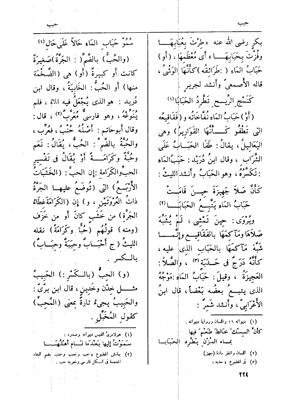 بكرٍ رَضِي الله عَنهُ (طِرْتَ بِعُبَابِهَا وفُزْتُ بِحَبَابِهَا) أَي مُعْظَمِهَا، (أَو) حَبَابُ المَاءِ (طَرَائِقُه) كأَنَّهَا الوَشْيُ، قَالَه الأَصمعيّ وأَنشد لجريرٍ.