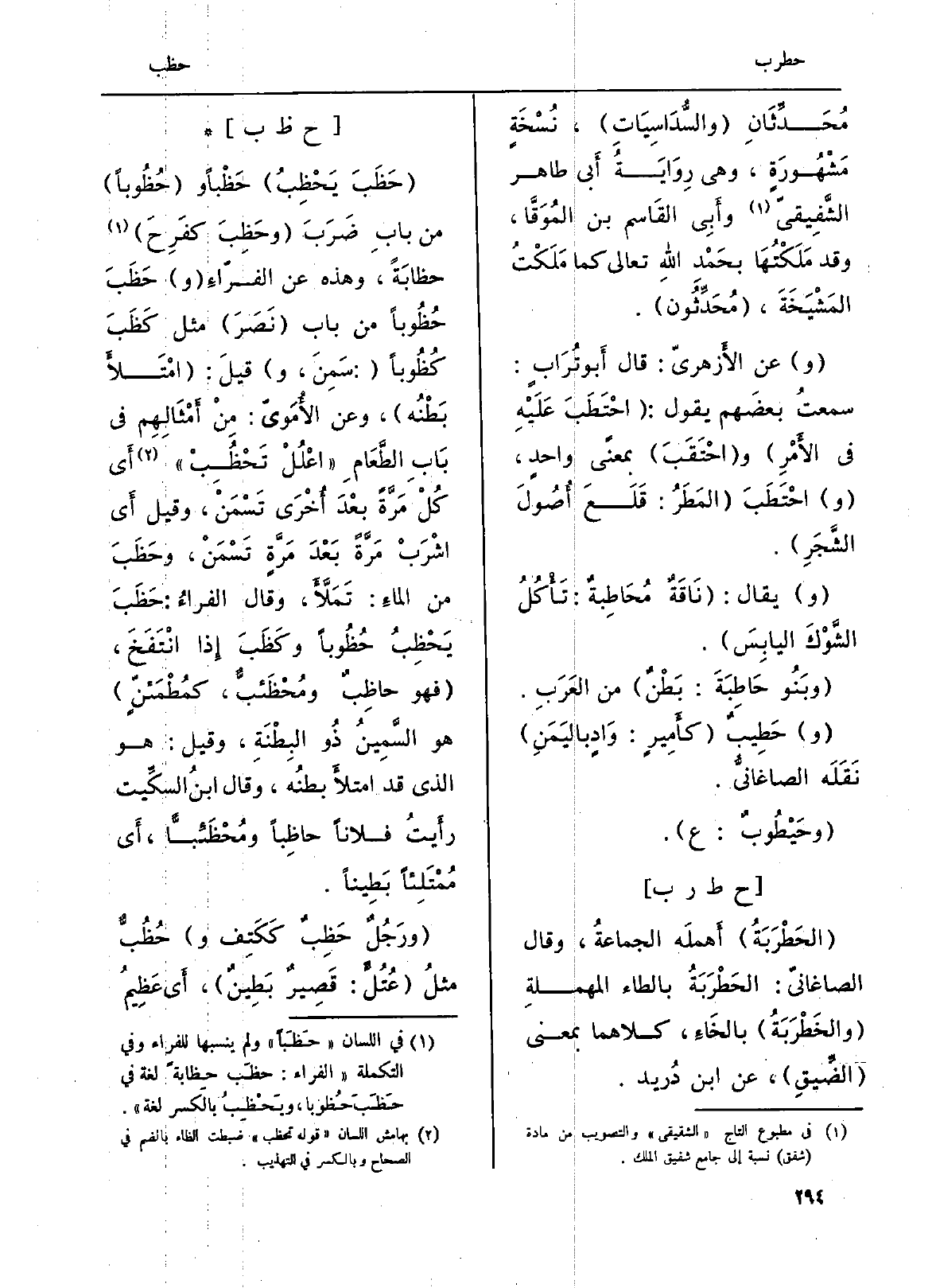 : (حَظَبَ يَحْظِبُ) حَظْباً و (حَظُوباً) من بابِ ضَرَبَ (وحَظِبَ كفَرِحَ) حظابَةً، وَهَذِه عَن الفرّاءِ (و) حَظَبَ حُظُوباً من بَاب (نَصَرَ) مثل كَظَبَ كُظُوباً (: سَمِنَ، و) قيلَ: (امْتَلأَ بَطْنُه) ، وَعَن الأُمَويّ: مِنْ أَمْثَالِهِم فِي بَابِ الطَّعَامِ (اعْلُلْ تَحْظُبْ) أَي كُلْ مَرَّةً بَعْدَ أُخْرَى تَسْمَنْ، وَقيل أَي اشْرَبْ مَرَّةً بَعْدَ مَرَّةٍ تَسْمَنْ، وحَظَبَ من الماءِ: تَمَلأَ، وَقَالَ الفراءُ: حَظَبَ يَحْظِبُ حُظُوباً وكَظَبَ إِذا انْتَفَخ، (فَهُوَ حاظِبٌ ومُحْظَئبٌّ، كمُطْمَئِنَ) هُوَ السَّمِينُ ذُو البِطْنَةِ، وَقيل: هُوَ الَّذِي قد امتلأَ بطنُه، وَقَالَ ابنُ السكِّيت رأَيتُ فلَانا حاظِباً ومُحْظَئباً، أَي مُمْتَلِئاً بَطِيناً.